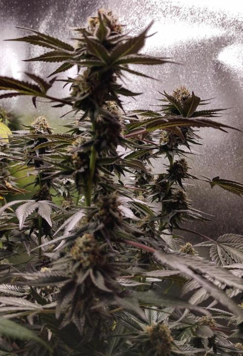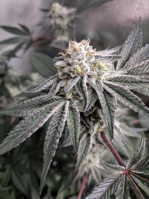 Inganjawetrust Oreoz #1 has been doing pretty good outside she did start to flower because of the drop in hours of light from when she was inside. She should revert to veg and then start flowering again around the beginning of August. Oreoz #2 and #3 are rocking along inside. They are both 36"tall and busy making cotton tops , here 14 days after flipping them to 12/12. They are also starting to show signs of frost 😁
