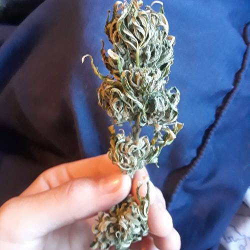 MUHTAVATION I feel like it went ok for my first small grow using 50 w indoor light and the nice nor cal sun with just a bit of fox farm nutrients and h2o.overall it was a bit leafy and was very light though the smell was very sour disel like it still was bag seed so I'm not sure.total weight around 7 g minus small nugs hope all goes good next round