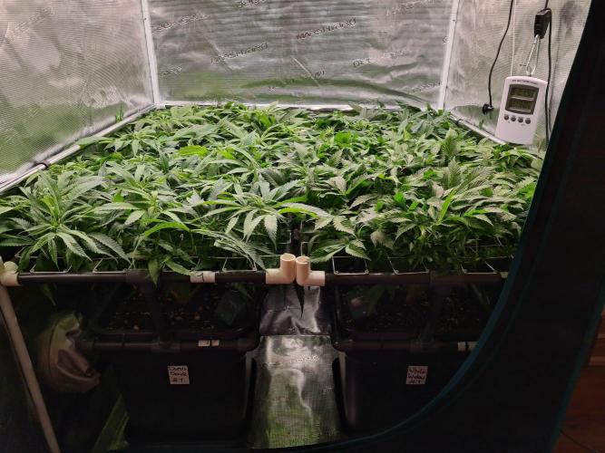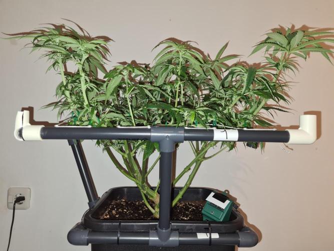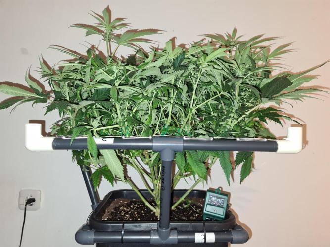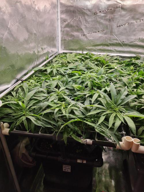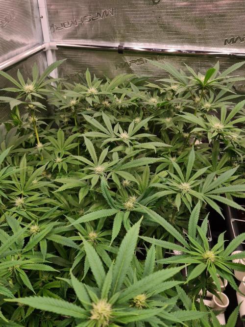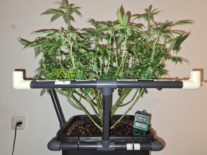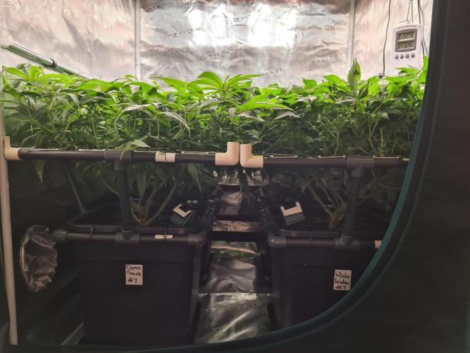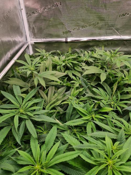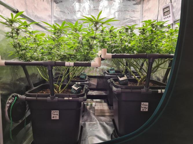 I raised both White Widow plants to the same height as the 2 Damn Sour's so the canopy inside the tent is nice and even.