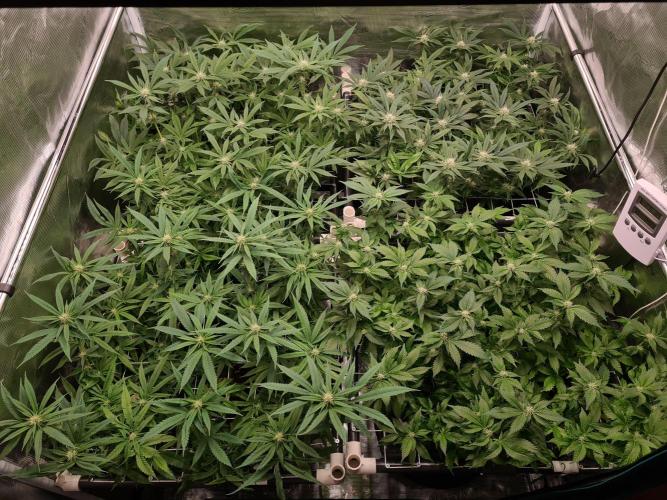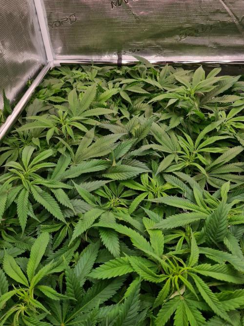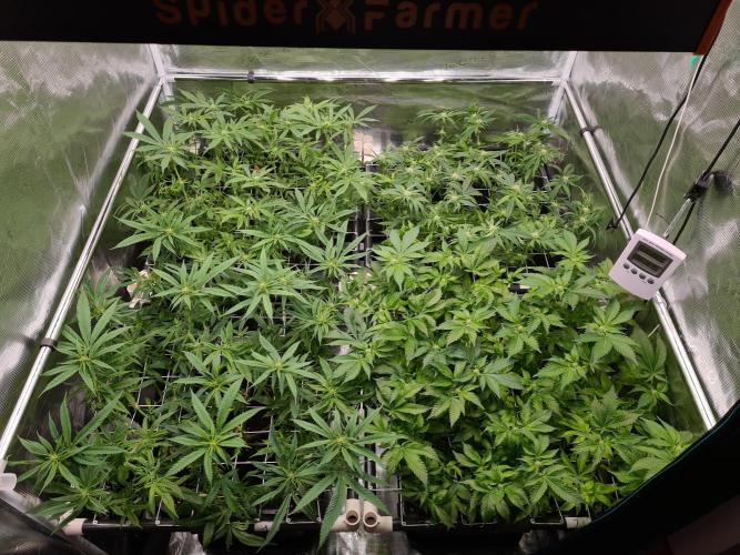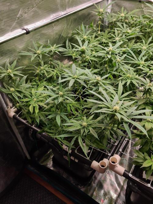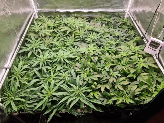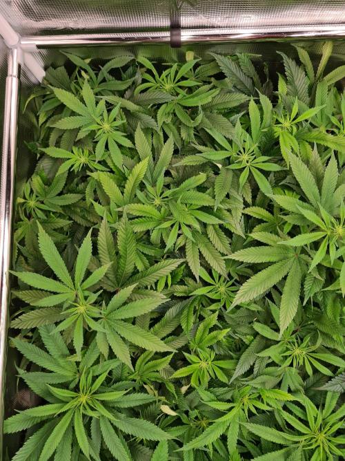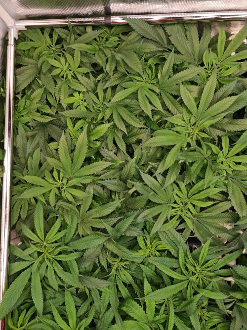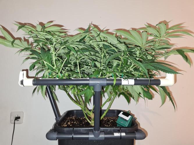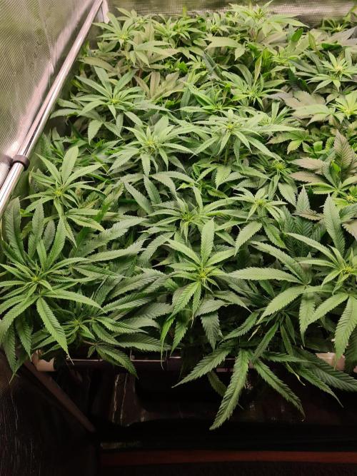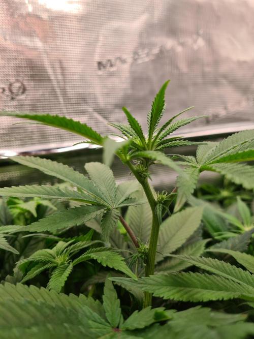 I raised both White Widow plants to the same height as the 2 Damn Sour's so the canopy inside the tent is nice and even.