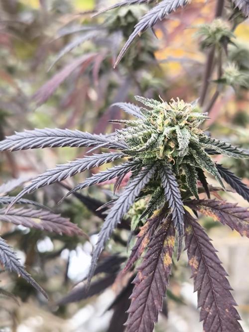 BalconyBoy 22.09.25 the last few days have been sunny and warm during the day and the plants loved it. The coming week is bringing a 10 degree temperature drop and mostly clouds and rain. I hear a lot of people harvesting early to avoid losses to mold and mildew. Over the last few days I keep close watch over the buds and spotted three places where botrytis took hold. Hazelnut size buds where cut away. I took out a bit more than infected to have a sample for my vape. It was an amazing taste especially the Purple Punch, which has a distinct grape and GMO flavor to it. When loading the venty with fresh material it takes a minute to reach vapor heat. I already love the Purple Punch taste. Pictures were take of the infected buds for educational purposes and also the trichomes to determine if an early harvest makes sense. In my opinion it does, looking at a full week of genuine shit wheather, I'll finish the job probably Wednesday.