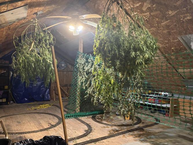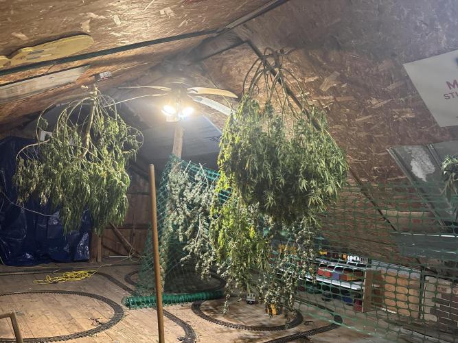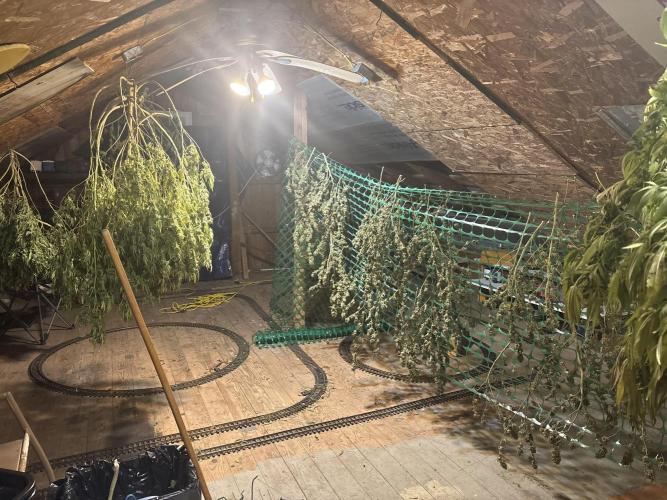 They spend 3-4 days hanging then get cut down and big leafed to larger branches which get hung on the scrim for another 2-3 days.