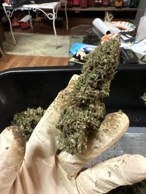 This is where on the more thickly developed plants you want to start pulling the buds away from the stem to get that air in there. Also wear fucking gloves do yourself a favor 😂.