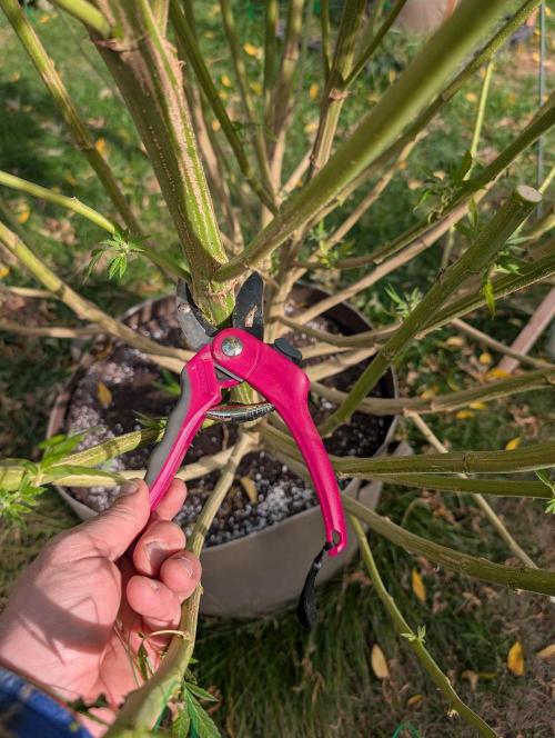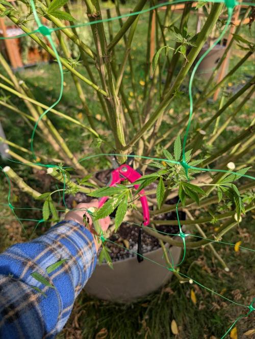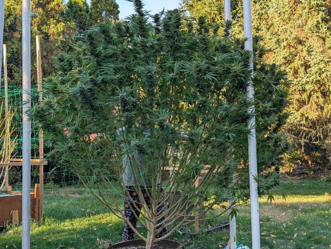 The most esthetically pleasing plants I've ever grown, nice and spherical with big yields. Trellis was purely for support, and they needed it even with thick sturdy branches the bud load was a lot during rain storms especially. Got a touch of yellowing as they transitioned to flower, think they just like a bit more nitrogen than others at that point, but otherwise not a single issue all the way to harvest. Smells amazing during harvest, can't wait to dry and taste them.