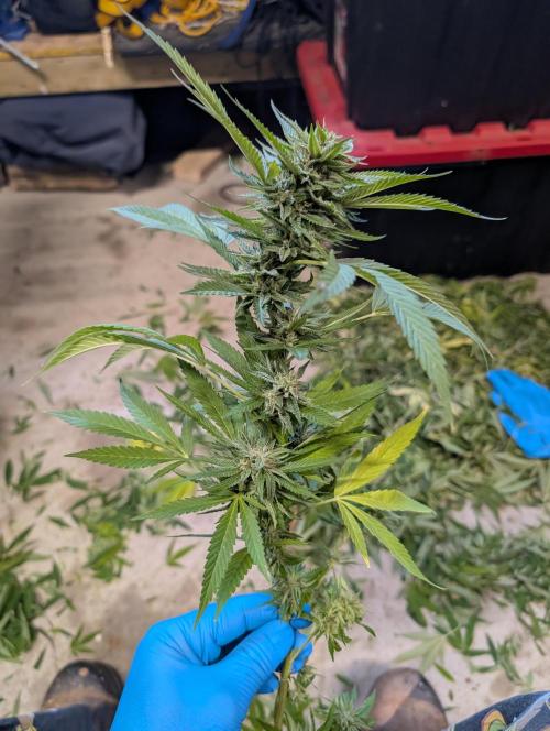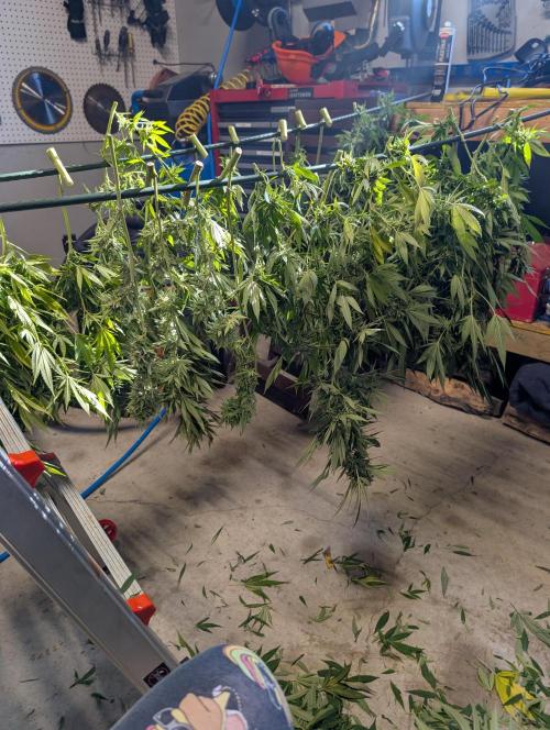 Minimal bud rot (less than a dozen pieces) and an absolutely huge yeild expected from the big plant. She is filling a 4x8 on her own save for the last foot. The smaller plant is packed into the 4x4. Lots of airflow and humidifier on both, let's get these girls dried out and ready to be turned into yummy yummy hash.