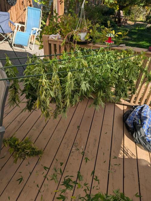 Grow_for_Happiness Well the harvest is always bitter sweet. Sweet to finally be close to enjoying your efforts and seeing your hard work pay off, but bitter because now the plants have completed their cycle and the season is over. Lucked out with beautiful weather, and these girls ran two weeks longer than my other strain, which gave me just enough time to dry and trim to save me setting up extra tents. Still, these girls were huge, taking 28 man hours to drop and deleaf for hanging in the dry tent. Very thankful for friends who volunteered to help with the work!