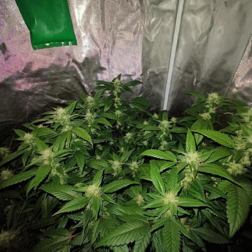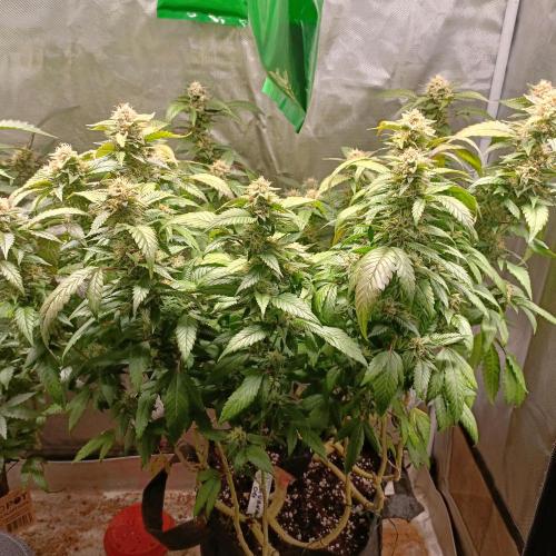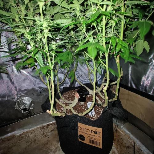 Big defoliation today, also lollipop on every branch to encourage fat tops and allow for better airflow.