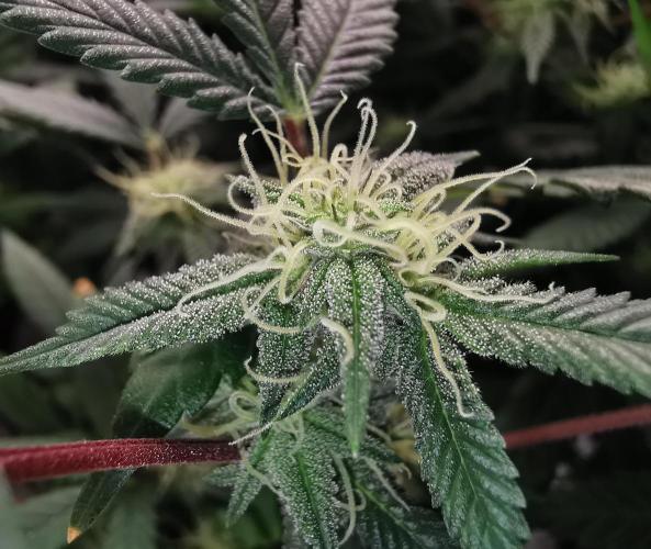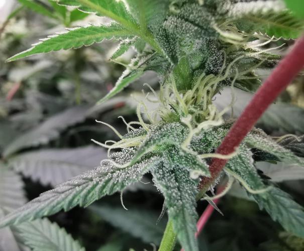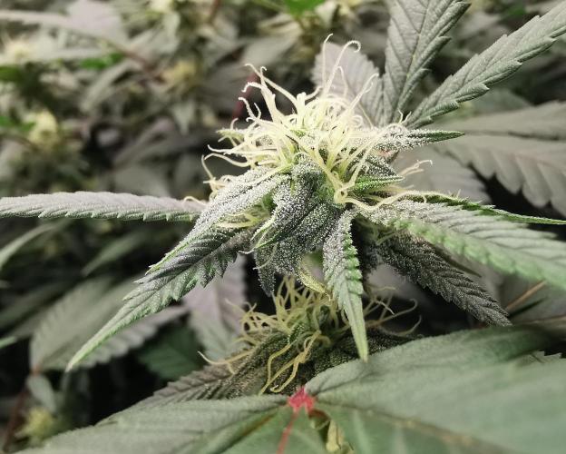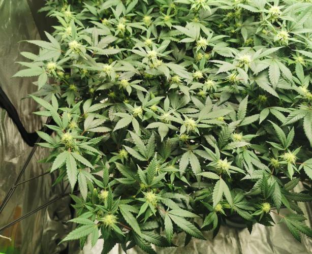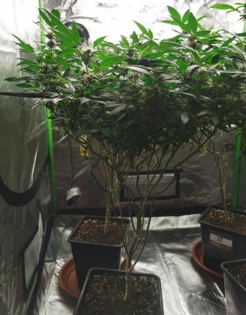 1juan420 last day of veg. I gave her 30g greenhousefeeding BioBloom as topdressing LED dimmed to 40% 0.8 VPD last days