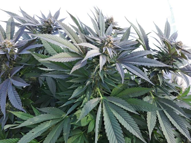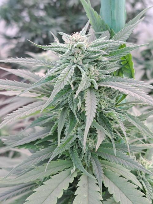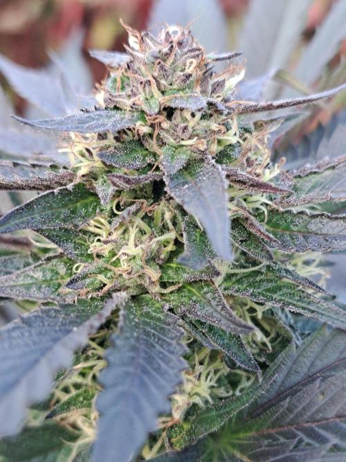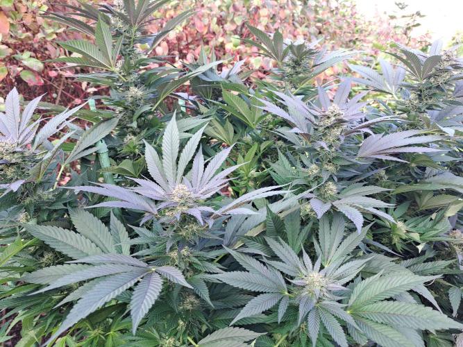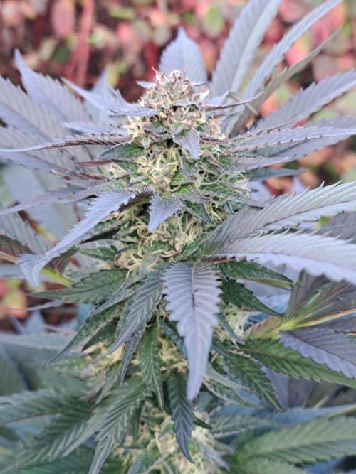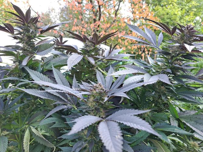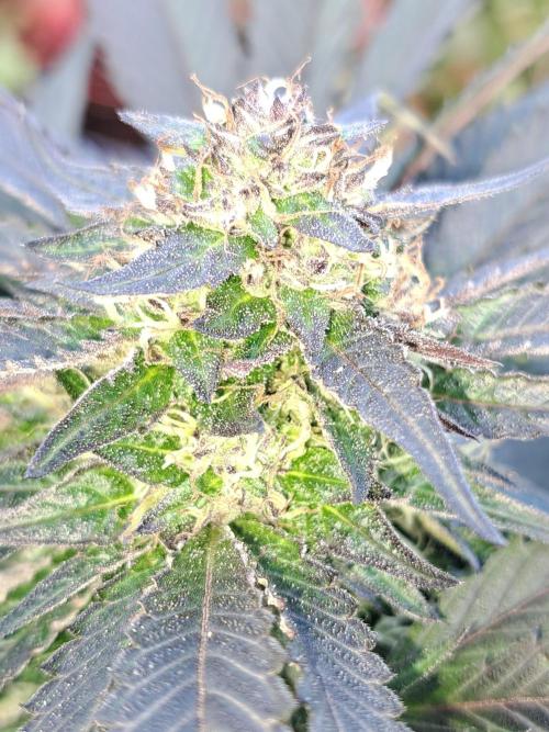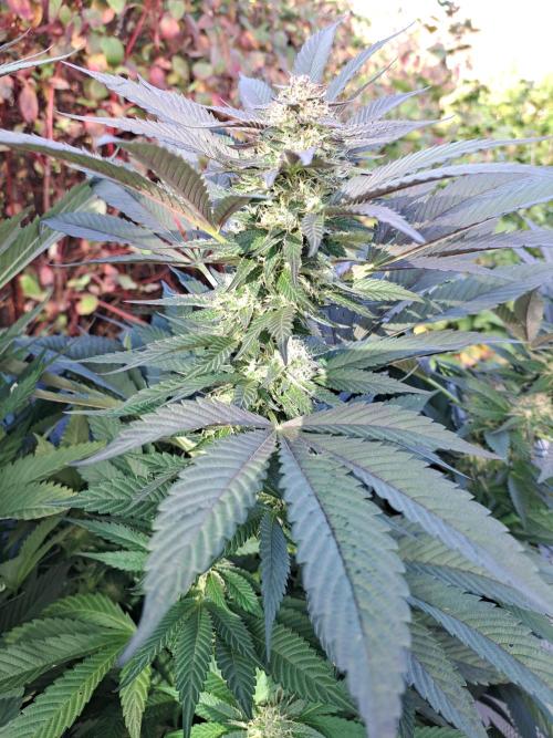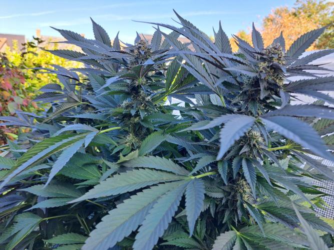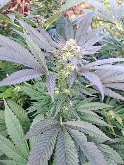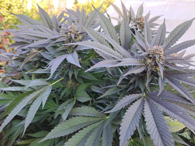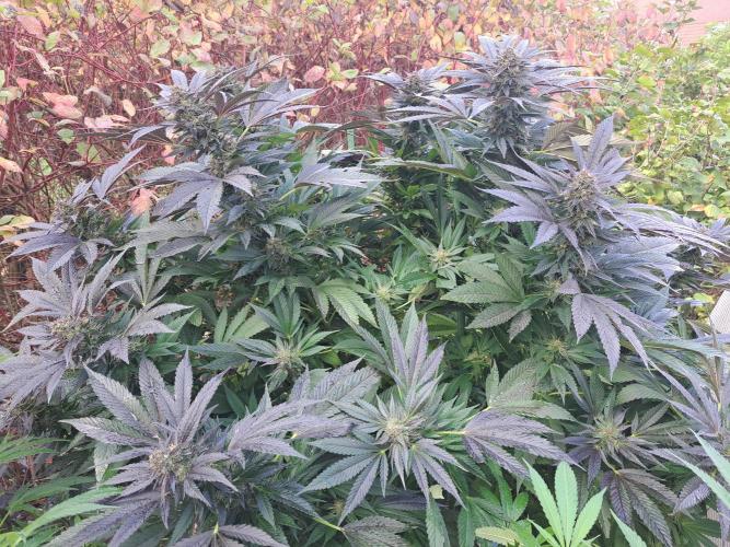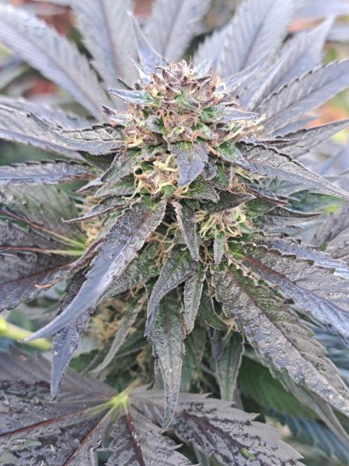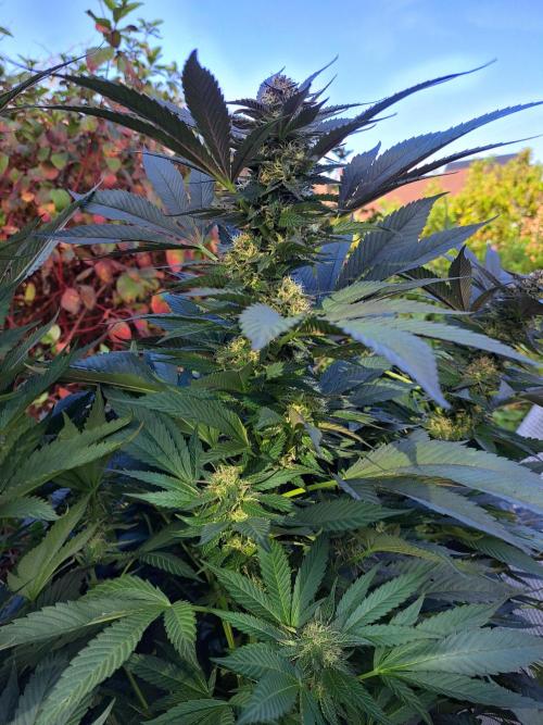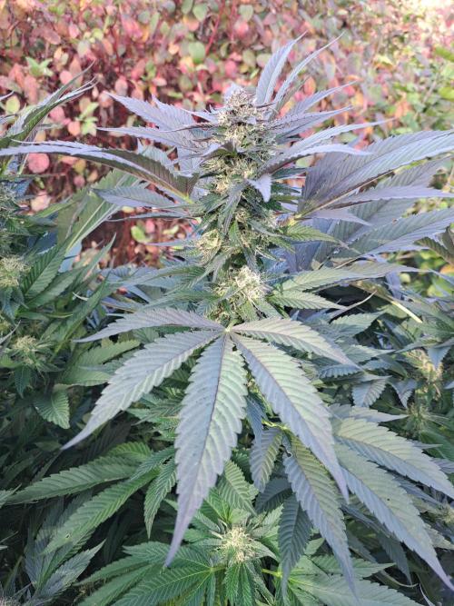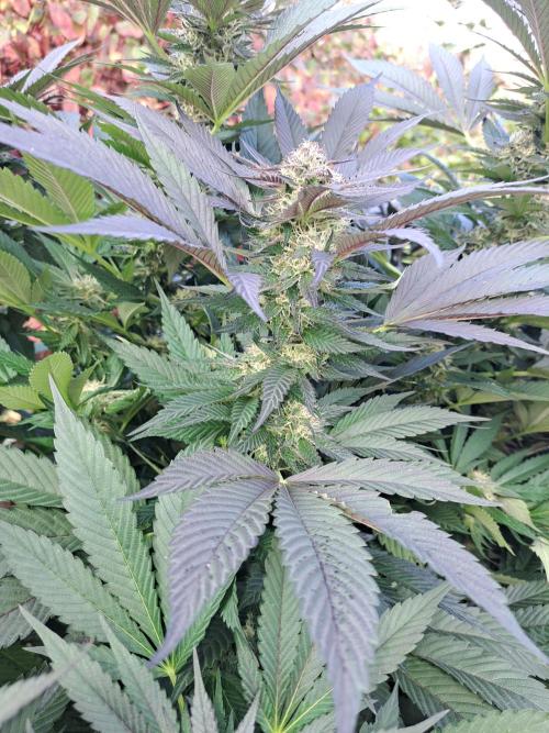Oyziphar The day length has dropped to 11 hours ⏰⏰⏰ This week we had a storm ⛈️ and cloudy week with lots of rain 🌧️ Some of my outdoor plants were heavily damaged, but the Cookies Gelato has weathered the storm very well 😛😛😛 Next year, I'll have to put more support to the branches 😵 The Cookies Gelato outdoor in full ground is making big buds and is ripening as well. Very promising pheno for outdoor use. She's also going purple 💜💜💜 The Liberty Haze in the greenhouse has a lot of small buds, and they still need a lot of time before harvesting. I defoliated the Liberty Haze
