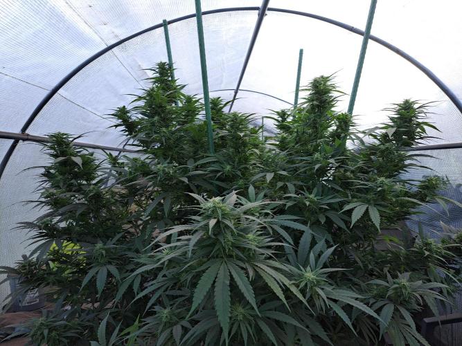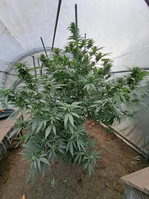 Oyziphar The day length has dropped under 11 hours ⏰⏰⏰ This week we had cold weather. Bits of rain 🌧️, but also lots of wind 🍃 Luckily still no mold in the buds 😘 The Cookies Gelato outdoor in full ground is ready to harvest. An ideal pheno for outdoor growing. Ready around mid-October 👍😊 I moved the 2 Liberty Haze plants from the greenhouse to the outside, this week. Thanks to the light rain, the plants were washed a little clean. That was necessary because there was quite a lot of dust on the leaves because of the chickens that roamed around in the old greenhouse. Moreover, the tops are still too small to be affected by the rain. Next week I will put the plants in a glass greenhouse, where the tomatoes used to be and where space has now become available because I have already harvested the tomatoes.😘