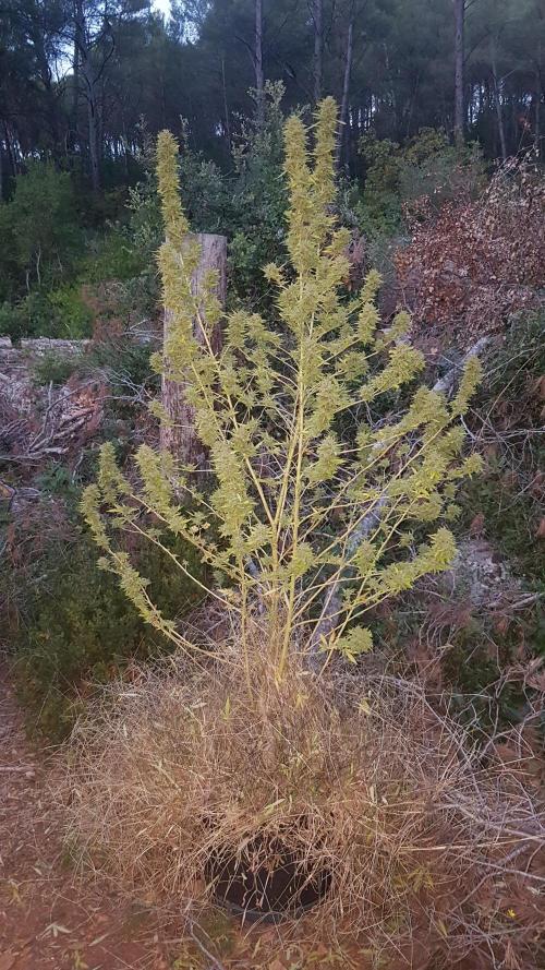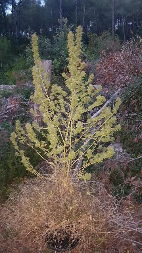 Flowering is slowly beginning. The plant's structure is branched and the leaves are quite small. This should produce quite a few buds. I've noticed that this plant isn't very water-hungry for its size.