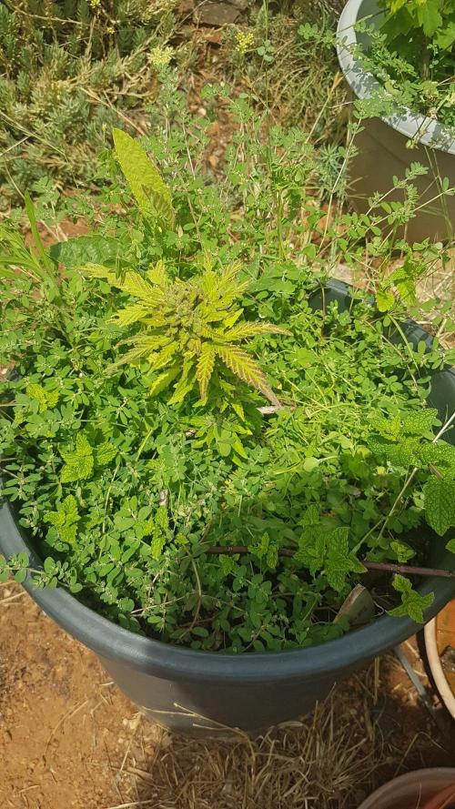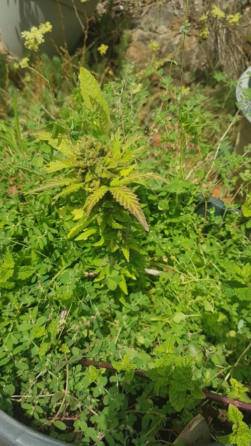 secretcedar The Ginger Punch autoflowering plant is recovering from the chicken attack. I twisted the top again today.