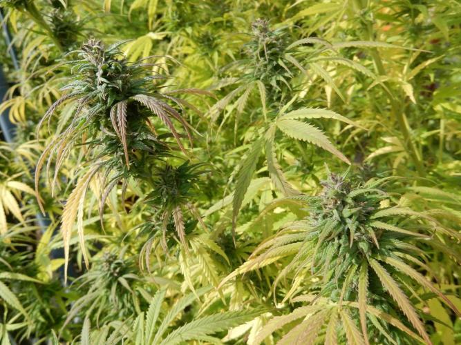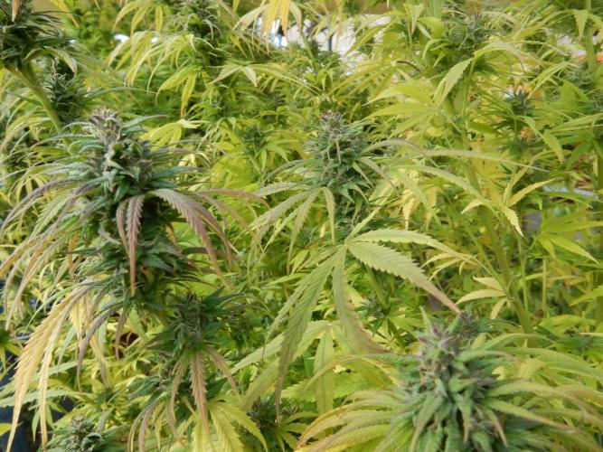 Es gab keine Probleme im Anbau Outdoor, im Gegenteil, sie liebt es im Freien zu stehen und den Wind zu spüren. Nässe, Tau, Hitze und starker Wind haben ihr nicht geschadet. Im Freiland im Boden wäre sie noch üppiger geworden. Sie wurde dreimalig getopped und hatte deshalb vel dünne Triebe, die die Blüten trotzdem trugen. Sie wurde geschnitten, erhielt ihren Rohtrim und hängt nun zum Trocknen. Die Buds sind nicht sonderlich groß und schwer, der von ihr ausgehende Duft ist zur Zeit sehr stark aber nicht besonders, Oldschool halt. Wer zum ersten Mal Cannabis anbaut, ist mit ihr gut bedient, darf aber keine Wundermengen erwarten, dafür auch keinen Schimmel und schöne Herbstfarben in den Blättern. Der Rohtrim verlief einfach, da sich die restlichen Blätter gut entfernen ließen.