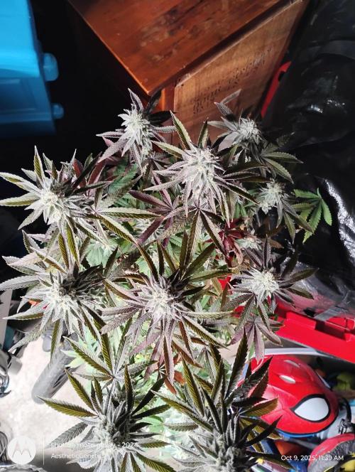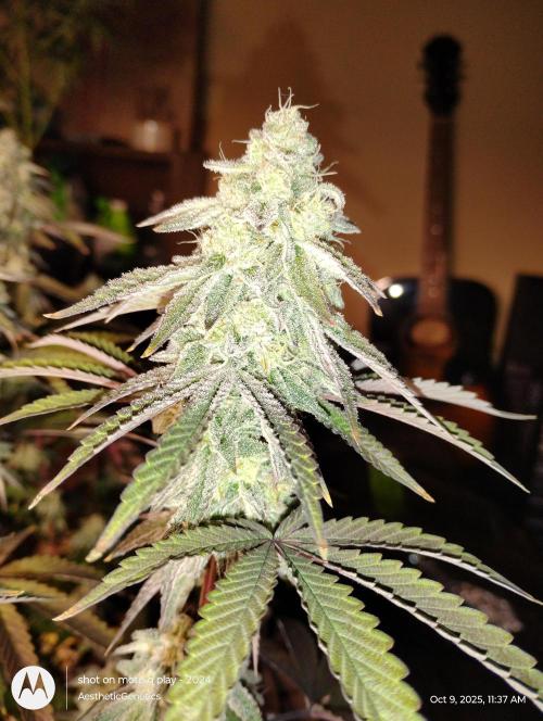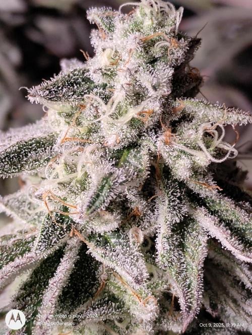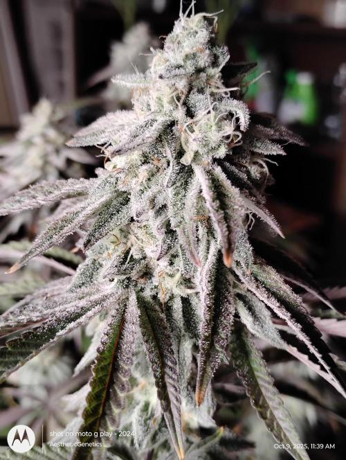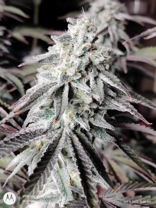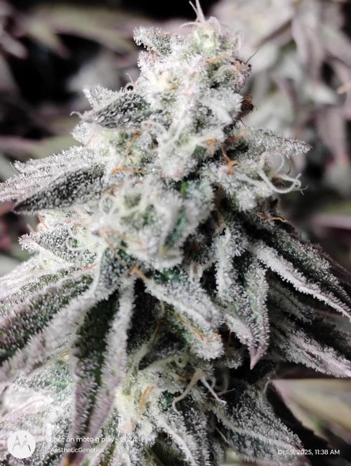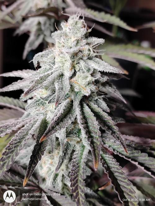 AestheticGenetix This strain may be as frosty as my RS11 s1 seed I ran earlier this year. The smell is almost berry like. It's very complex. It's like berrys with pepper and back end sour gas. Bud are pretty dense despite the small size. Gave her a tea of bloom and bloom booster. Just mixed directly into water and poured on top of soil She's losing leaves because I didn't feed enough nitrogen in early flower. But at this point there's not much I can do. Check out my YouTube for more consistent updates with behind the scenes that I can't post on here. Such as cloning tutorials and how I feed and trim etc YouTube.com @aestheticgenetix