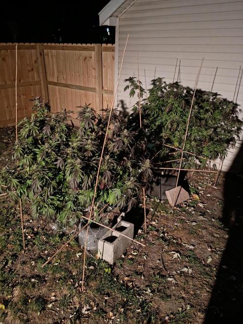 Also have been finding that an animal is digging in pots actually tore one plant completely put. My grow tent arrived and I wanted to try different type of growing so I took 2 strongest girls transplanted em into 10 gallon pots with build a soil 3.0 and put em inside. Started another diary for them. With the remaining three I know it was premature and gonna stunt em another week but I wanted to experiment with pot size and effects on plant. So one got left in a 3 gallons pot one went up to a 5 and one to a 10 gave em all a light feed after transplant and moved so they will get more direct sun during the day.