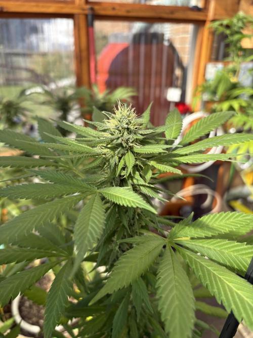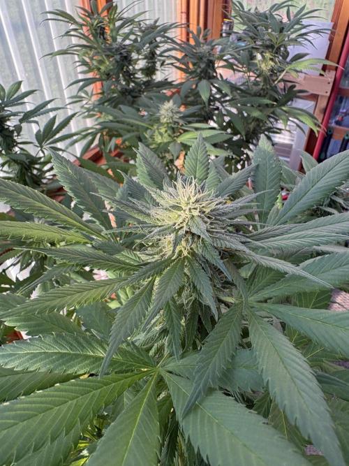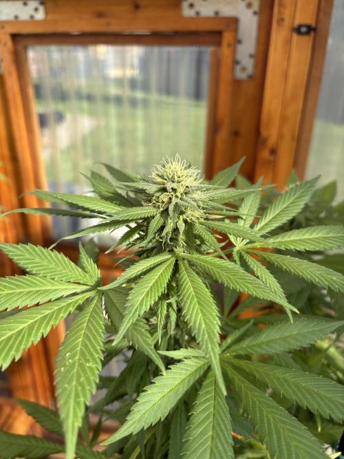 Purple Romulan is doing well but is the furthest behind in reaching maturity of all specimens in garden. Flowers are of decent size, with adequate trichome production.