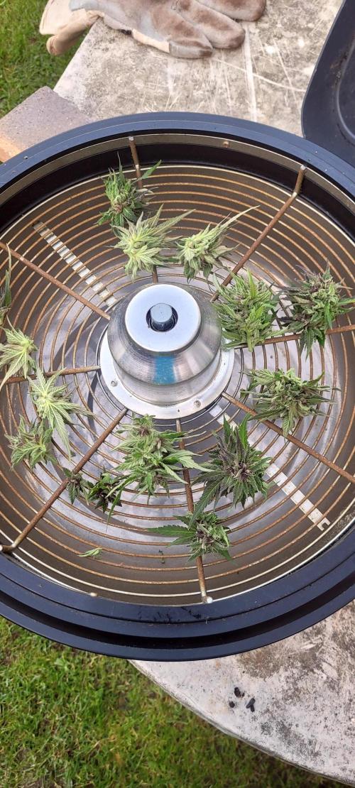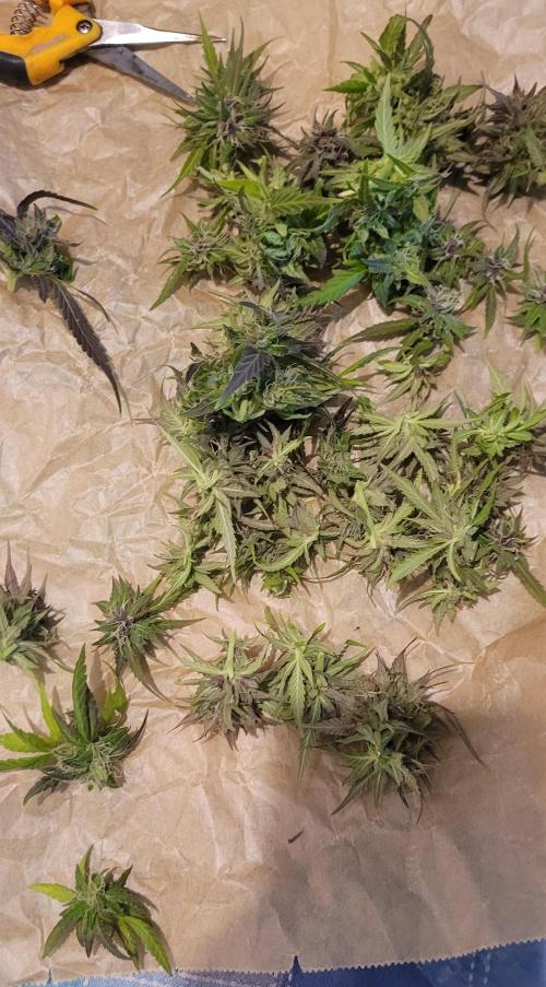 TruTraTri Just fog and rain at day. Additional freezing temperatur at night. Sadly there were additional mold spots. Therefore, they were released from their pain and suffering. As expected very low yield, but my fault. Coloration is nice on every plant (I do get colors on nearly every plant due to temperatures, so idk). Exceptionell heavy smell. Not sure what to do with the harvest (trimmed is just Hizzard, no pictures of the others, ~shoe box volume) . After final decision, last update on dry+ready product when I am decided. At the moment everything is possible 😎 I left Fleeb and Plumbus standing around, if they reveg I don't have to transport new stuff next year .. so perhaps another update in 3-4 months. Thx again @DutchPassion_Official for sponsoring the contest. Sorry for my early and consistent mess up 😅. Got some power plant seeds left, I'll use them for another diary to make up for this run 😜.