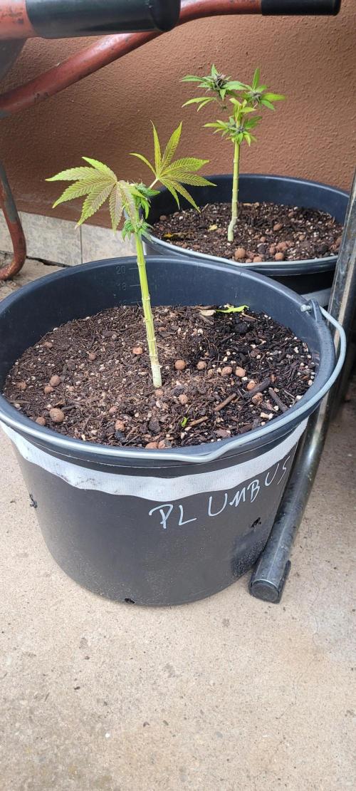 TruTraTri **Day 29–35 – Week 5** %%%%% WEATHER %%%%% 2025-06-30 to 2025-07-06 Avg Sun: 6.3 h / day Sum Sun: 44.1 h / week Avg T(day): 30.1 °C Abs Tmax: 36 °C Avg T(night): 18.3 °C Abs Tmin: 15 °C Avg RH: 58 % Avg Wind: 12.3 km/h Wind (strongest): 14 km/h Avg DLI: 18.8 mol/m² (estimated under full sun) Total Rain: 5.7 mm Severe heat early in the week, followed by cooler showers and reduced sunlight. Forecast: Heat persists into next week, with scattered rain and humidity shifts. %%%%% LOG ENTRY %%%%% Despite two days of brutal heat, the Shaman plants reacted with visible vigor—deeper green leaves and noticeable growth just days after transplanting. Early stress may have hardened them. Genetics appear well-suited to a rough, low-maintenance style. July 4: Lower yellowing leaves were removed to improve airflow. Overall development now looking strong. %%%%% COMMENT %%%%% Fleeb: "Stay out of my personal space" Plumbus: "Get outta dat personal space" Hizzard: "Keep away from dat personal space." Repotting was necessary, I hope it did not take too long to recover and show strong growth. At the moment I am very positive and hopes are up for a good harvest for such short veg. Just pictures of one day, so more or less the same pic. I hope next time I see them they are big enough for single shots 😅 %%%%% FARM SAYING %%%%% “July heat ripens all that June began.” Fleeb: "Stay out of my personal space" Plumbus: "Get outta dat personal space" Hizzard: "Keep away from dat personal space." Peace among worlds! 👆