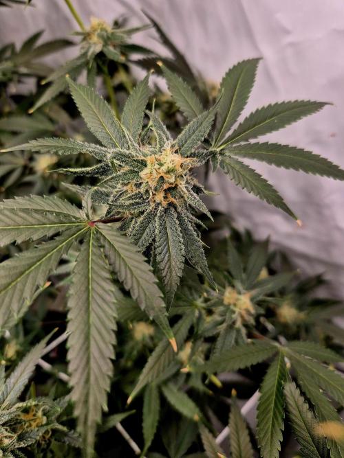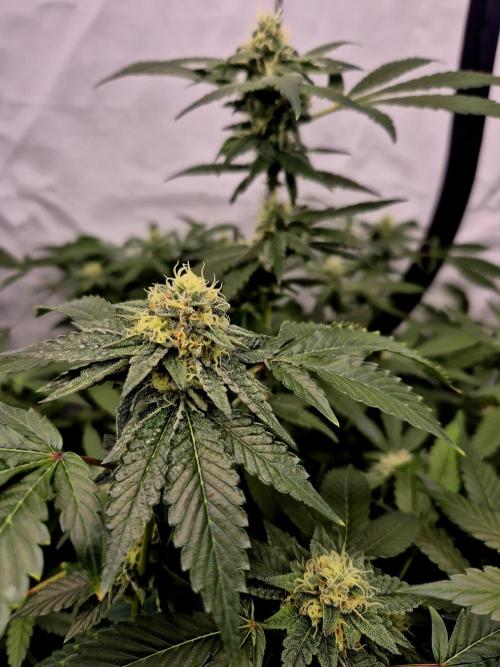 Kinghaze Week 2 of flower Bud structure is good visible now. I increased the ec to 1.6 just to give them a boost, i will lower it a little next time. In a few days when they stop stretching i will do a big defoliation. I have a little issue with trips, i see the marks on the leave but not a big investation YET. I will spray them down with canna cure.