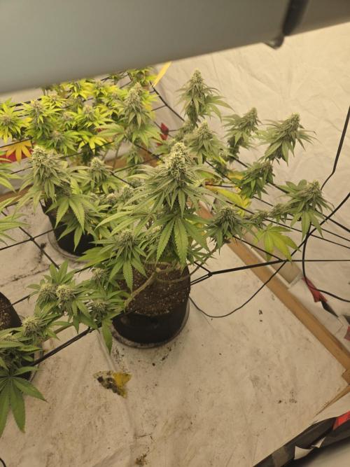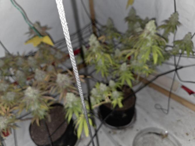 Spratticus Today is week 3 of flipping lights. Bottom right is the lady, and she is starting to frost, I'm having house fly issues and I did a power clean all over my house, my tent is redneck so it's always open and they come in at lights on.
