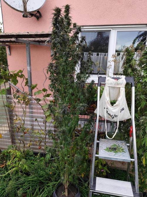 Tag 218: Die Power Flower fem. und die Special Kush #1 fem. bekommen seit Sonntag kein Wasser mehr. Hab heute wieder eine ganze Menge Laub weggenommen. Die Royal Medic fem. bekommt noch weiter ihren Cocktail, sie wird noch nicht geerntet, da ist einfach noch zu wenig dran.