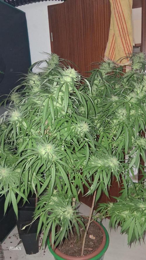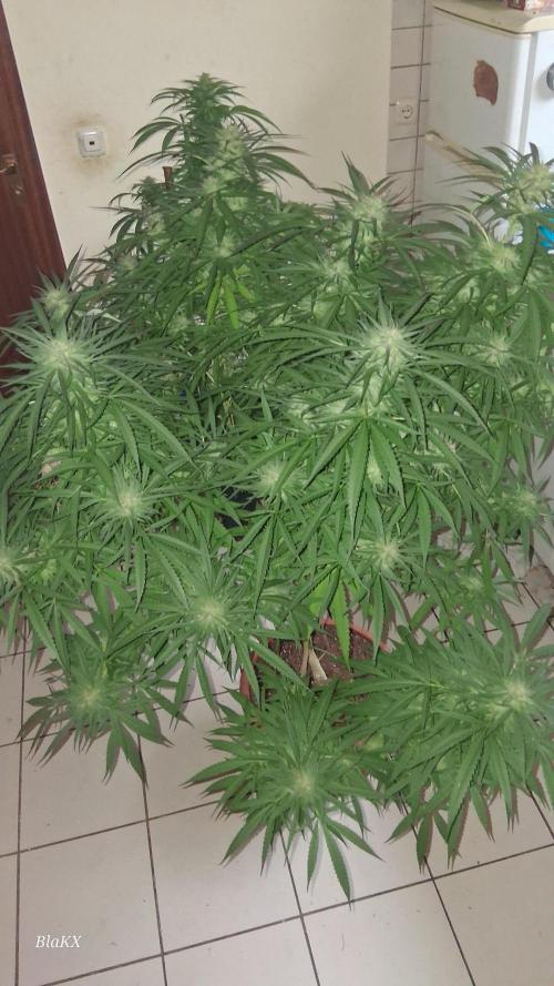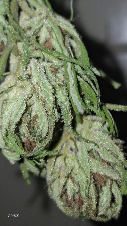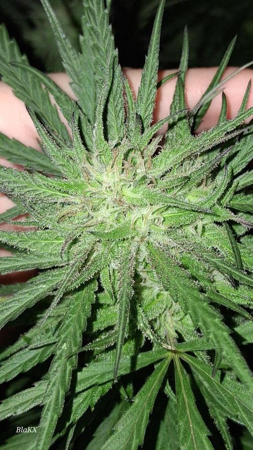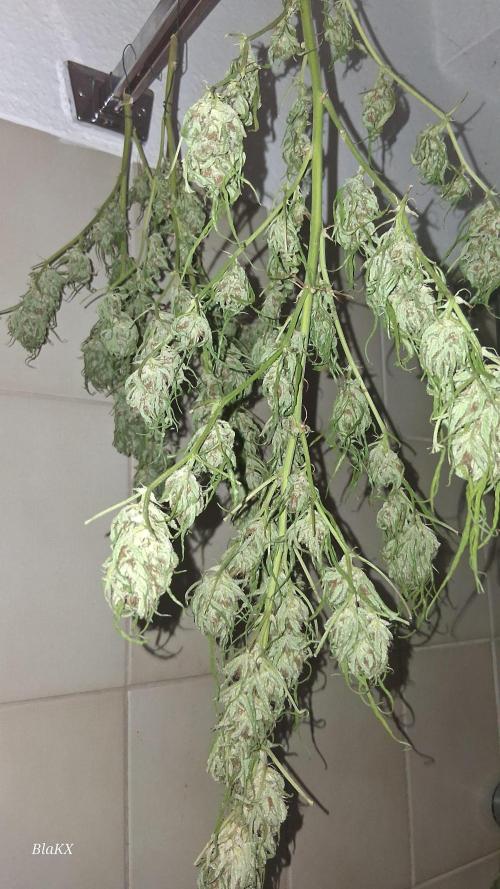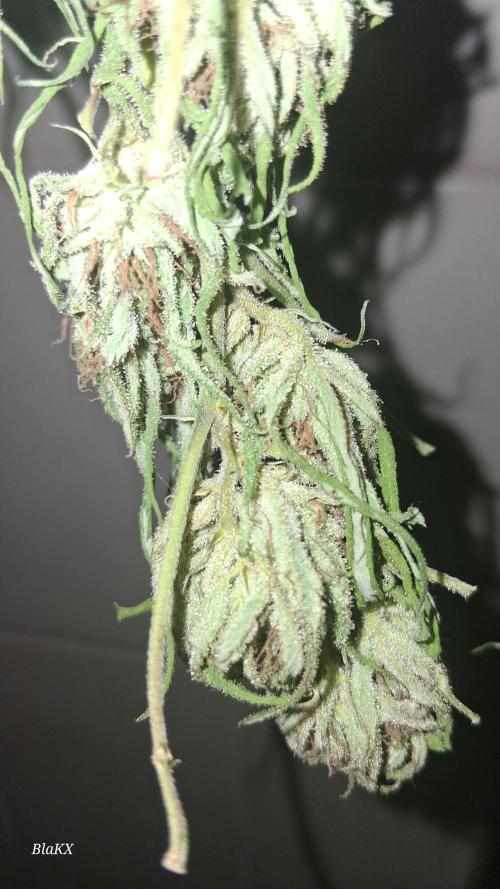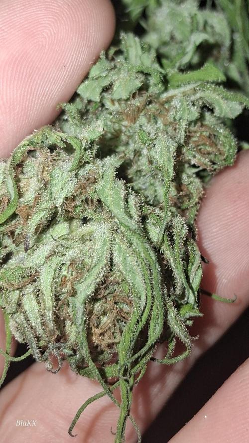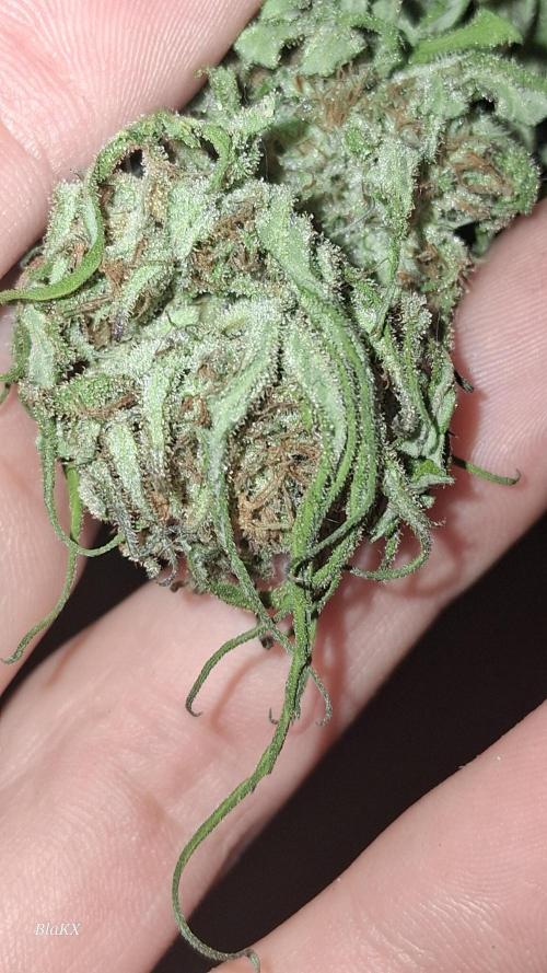 BlaKX Der selektierte Pheno von den Krumme-Gurken war mein erster Steckling von Ihnen und musste Outdoor zeigen was er kann und aushält! Er hat nicht enttäuscht und Outdoor Umstellung von mineralisch auf Organic Langzeit Dünger umzustellen war kein Problem und sie hat ein Terpenen Profil das den Lavender Kush Abstammung raus riechen lässt diese Lavendel und leichte Schokoladen note am ende. Habe ein paar Äste entfernt und die sind nach 1 Woche trocken gewesen und wow kein heu Geschmack und Aroma nur leicht scharf wegen Chlorophyll ansonsten ein leckerer Kush pheno mit Lavendel note:P