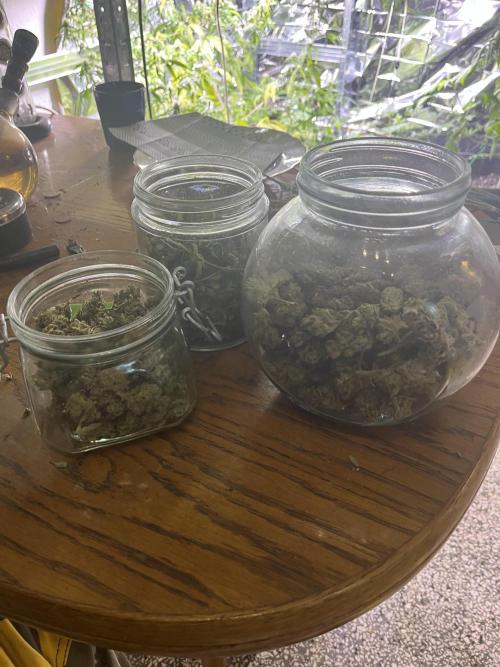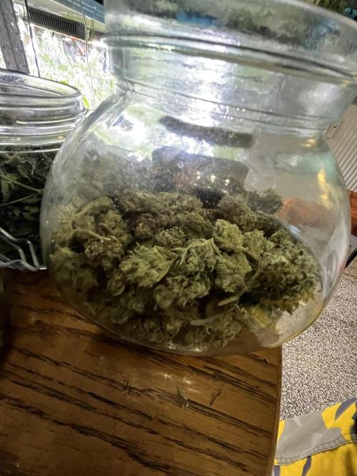 The buds have a decent size, frosty with a strong, pleasant aroma already coming through the room. In a few more days she’ll be ready for jarring and curing.