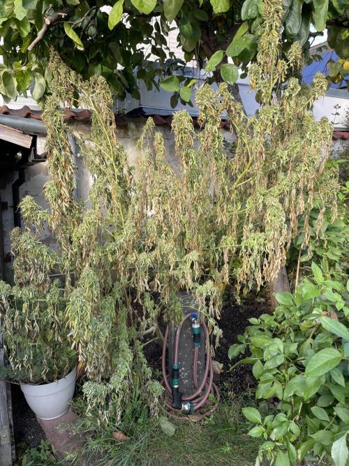 Sejanus21 Special Queen #1 is thriving, even without any additional nutrition. The spot under the quince tree seems to be ideal. A lot of sun in the morning and some protection against rain and wind. This is the easiest grow ever. I am looking forward to the flowering phase which should start soon.