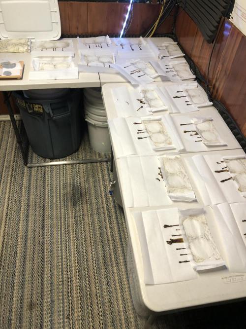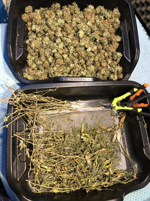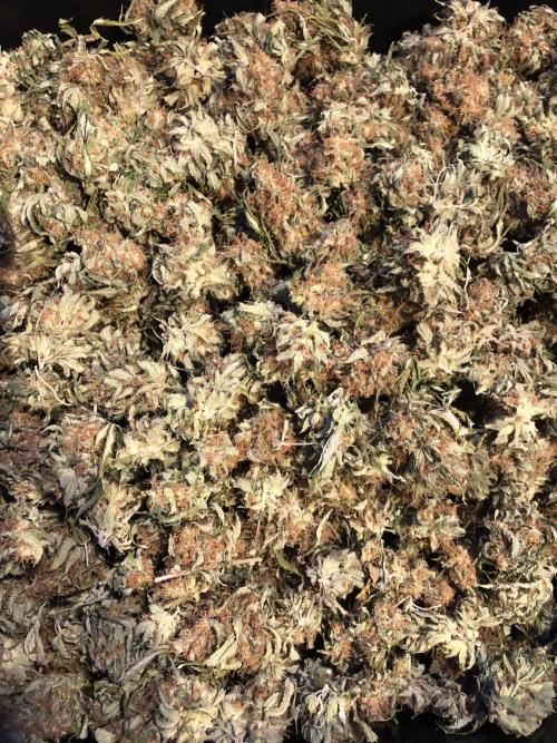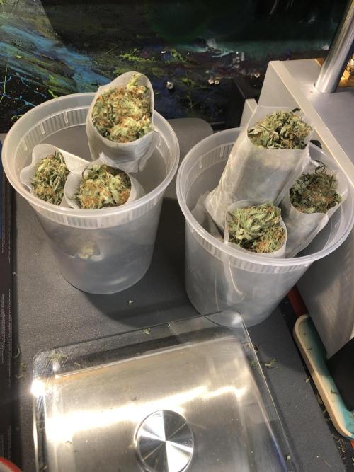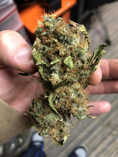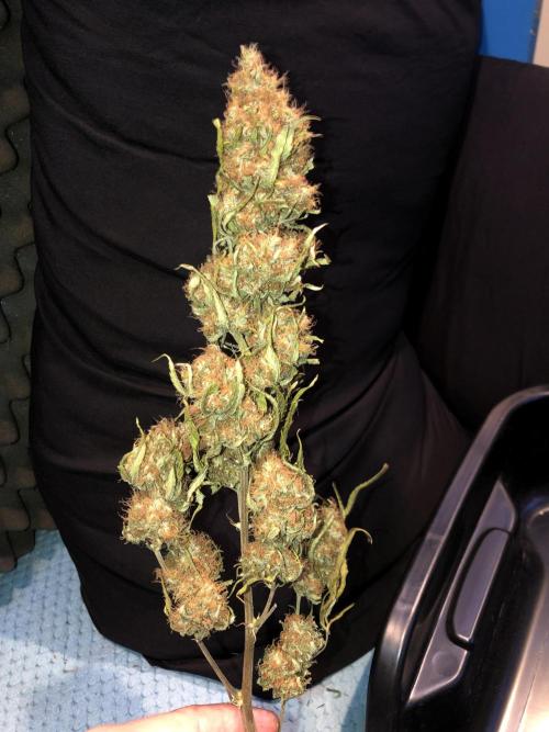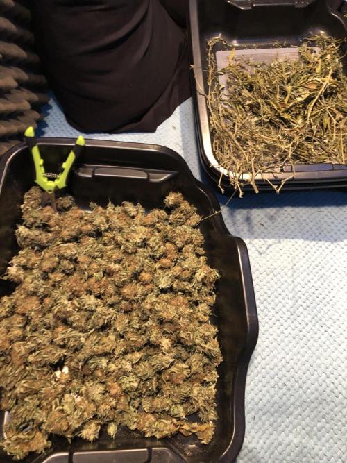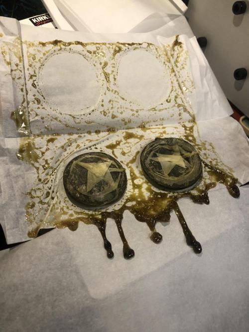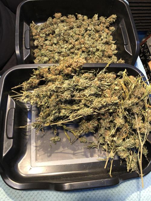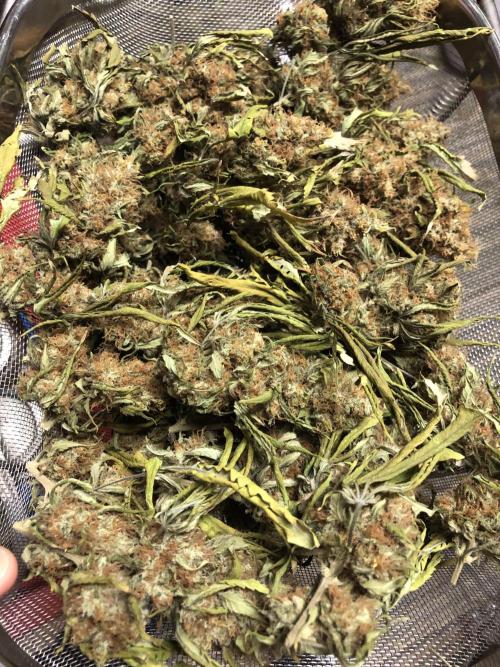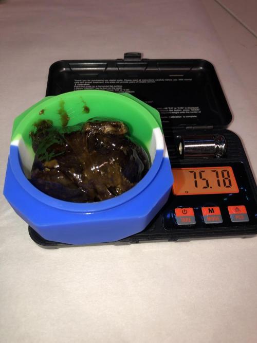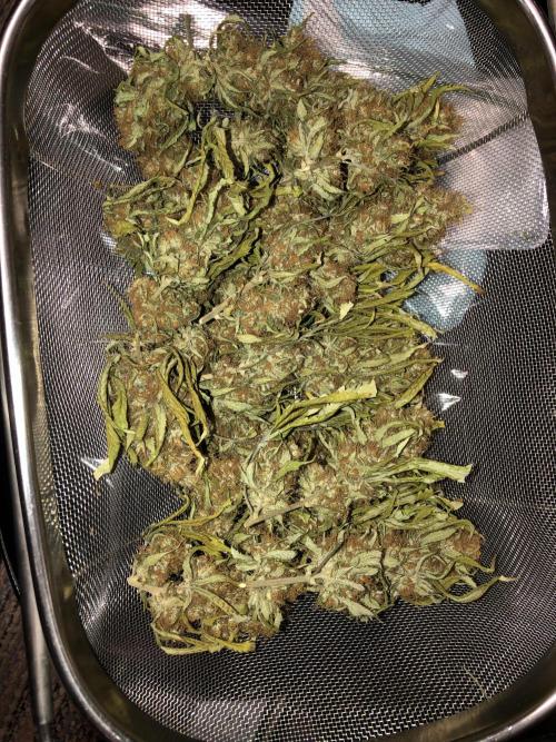 MindFlowers68 She was a great growing plant and got super fat but unfortunately the inside is some of those top colas got some bud rot. I lost around 40 g I bucked those off set those aside and trimmed the rest of the plant and inspected it and pulled anything else suspect out. I decided after finding that I wasn't gonna spend a bunch of time trimming was unaffected meticulously and decided to press all into rosin but 2 ounces for myself, because I'm a little nervous that it's not gonna stay well in the jars. Its super nice flower too perfect consistency nice and greasy but breaks apart nice. I knew it would make a good contender for rosin and it being sativa leaning will be good to make some cartridges out of. The top colas with bud rot were used for non-committal test presses with the new rosin press. There wasn't really that much bud rot but I just wanted to be safe but I cut out what was on there and the test press stuff which I ended up getting 20 g of rosin from I'm gonna smoke myself I'm not gonna lie I think I'll be OK. I wanted to try a 2-ounce press with four 14g bags to see how they would do and did fine. The main issue is folding the paper to fit was hard and collecting the rosin harder so opted to do 1 oz presses. My yield was around 15 to 17%. I'm sure I can get that higher once I get the press all dialed in. It is easier to over-press with my hydraulic pump, but it does make it way easier than using my little NUG smasher mini. It would've took me forever to press all that man. Counting everything I yielded around 26 oz. I saved 2 oz of flower did a few test presses with stuff with bud rot that was trimmed off turned into 20g rosin for personal. 40g trash to bud rot. The rest that was still good got pressed into over 75g of flower rosin. Going to use to get some rosin cartridges dialed in.