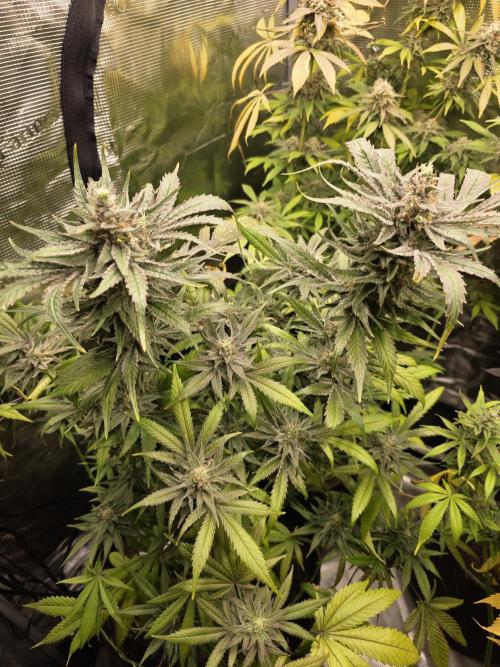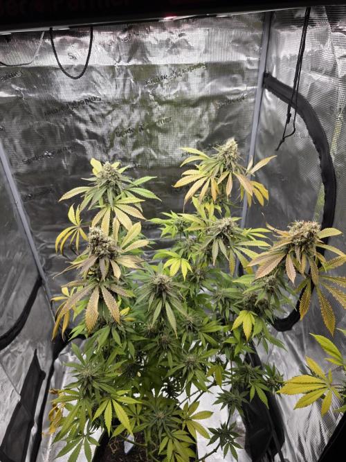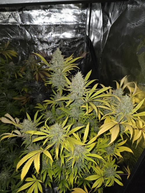 Am Anfang etwas langsam aber gegen Ende hat die Dame Vollgas gegeben. Hat gegen Ende sehr gelbe Blätter bekommen. Könnte viele Gründe dafür geben. Zum Beispiel die trauermücken oder nicht richtig gedüngt oder ph wert wie auch immer. Bei diesem grow ist so einiges nicht nach Plan gelaufen. Dennoch hat sie gut abgeliefert obwohl sie bestimmt noch 2 Wochen gebraucht hätte.