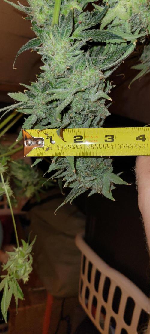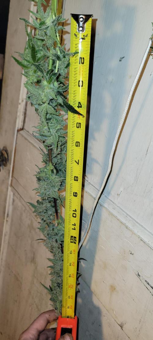 Stonerandgrower I harvested the short one today. It weighed 2.5 pounds wet and the buds next to the tissue box is 19 inches of solid bud and it's a side bud lol it's crazy they're the biggest buds I've ever had and the bud that's laying on the net is 23 inches from top to bottom. Alsoo sorry I haven't been actively keeping things updated then just coming and posting 10 pics and talking a ton but yeah :)