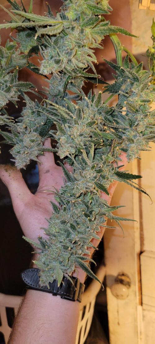 Stonerandgrower Rqs hulkberry auto 12 weeks since sprout and 8 weeks of budding. i think I'm gonna harvest it this weekend. There was 3.5 pounds wet without the few stems i hung