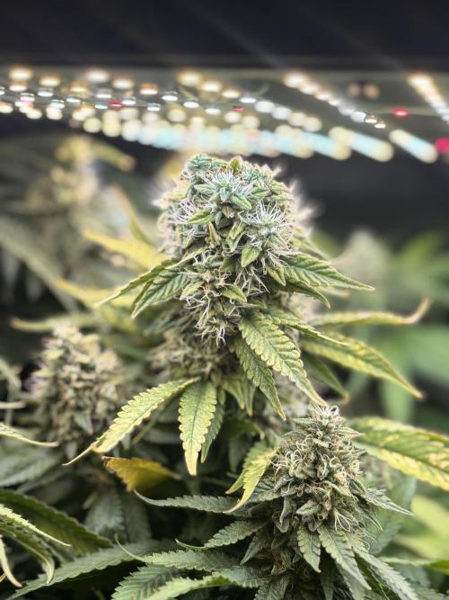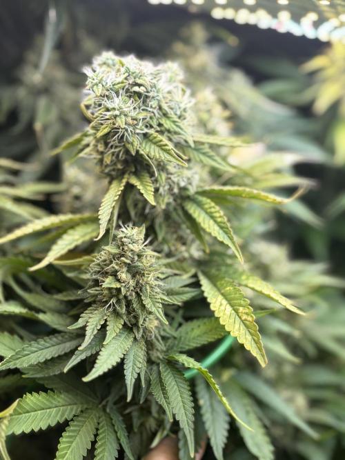 SmokinTees420 This plant is starting to grow some fat buds! They are super close to the light so having some burn issues. Can’t wait to see the yield this one!