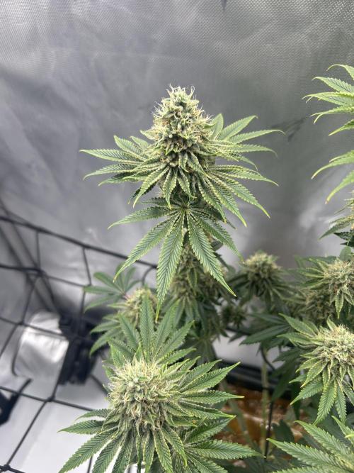 99farming Buds are continuing to form nicely and are finally gaining a little weight. Same nutes for the week. Turned light down a notch to hopefully help the yellowing tips.
