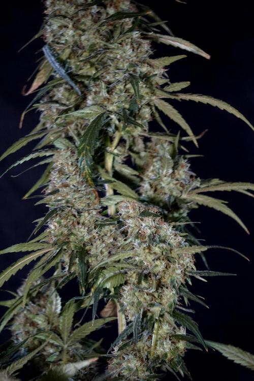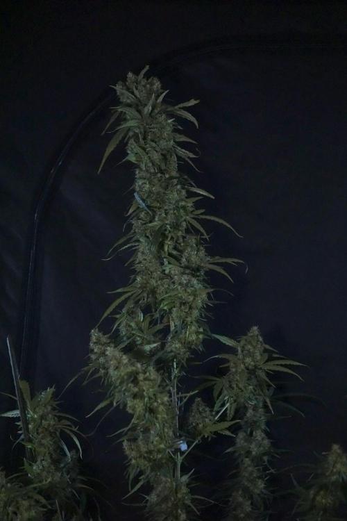 Now in full bloom, both girls are thriving under the lights. Their colas are massive—one could easily compare the main stem to the size of my arm. Dense, weighty, and coated with trichomes from tip to base, they’re the very definition of healthy flower formation.
