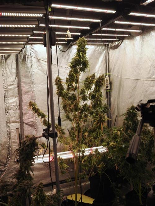 • Flower: early flip to 11/13; progressive nutrition with Aptus + Plagron mix; inner canopy lighting (ICL300) to support middle/low bud development; spectrum tuning (red/far-red/UV) toward the end of flower. Final flush and plain water to finish.