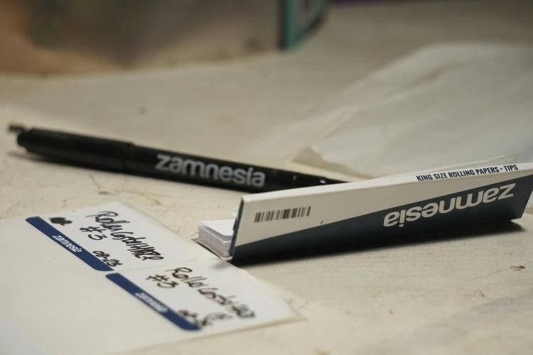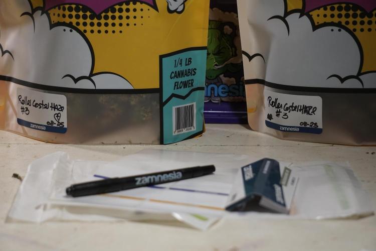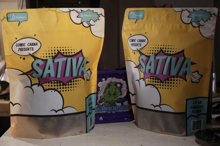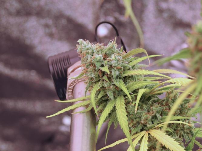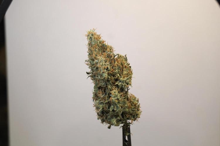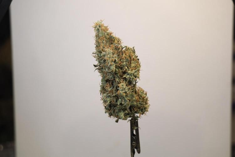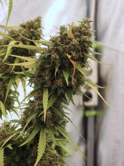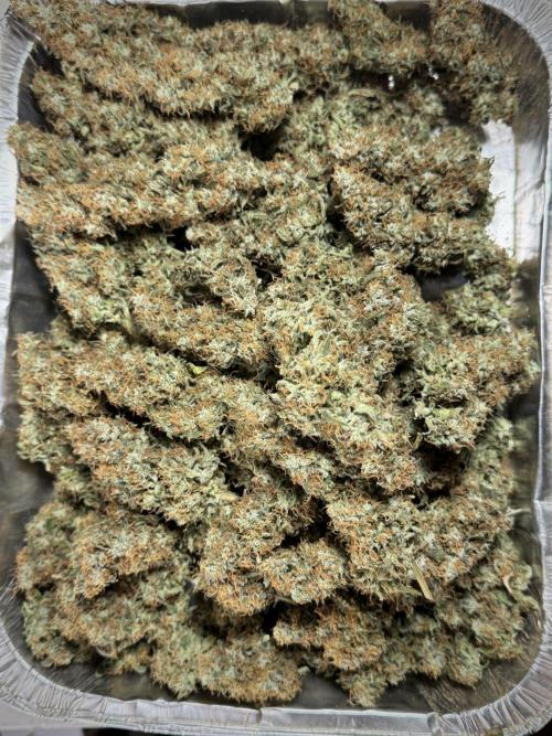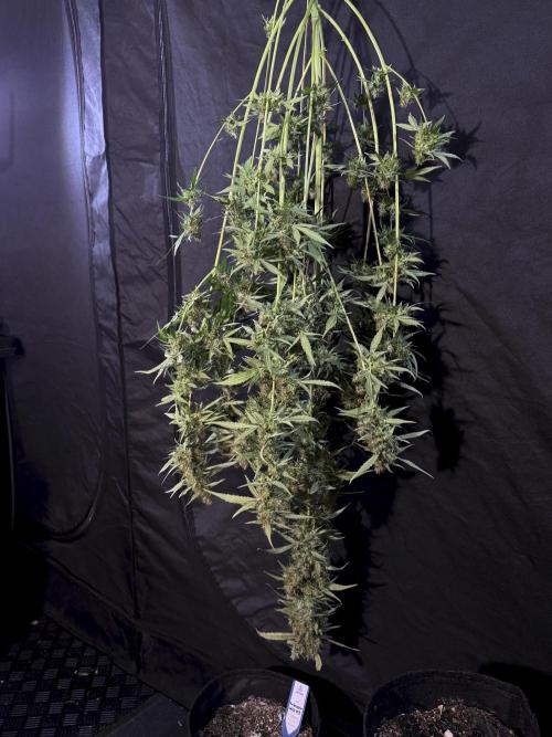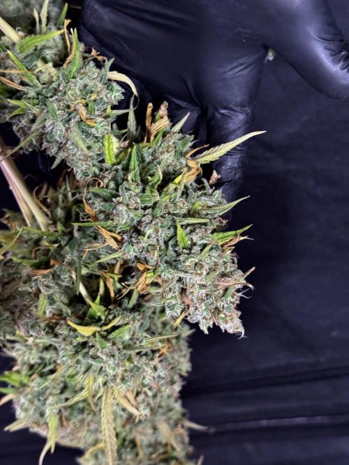 • Harvest: judged by trichome and pistil maturity, aroma, and overall plant condition. Whole-plant hang for two weeks, then hand-trimmed and cured in Grove Bags. Kief collected and pressed to make hash.