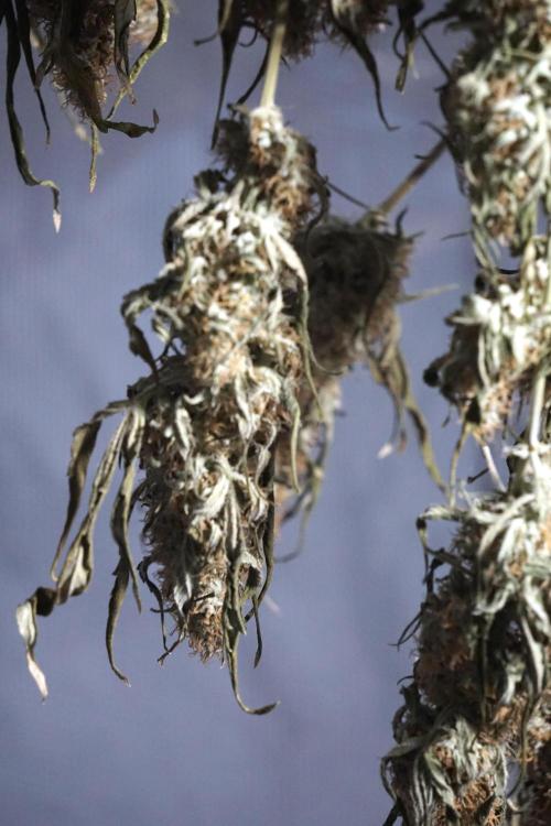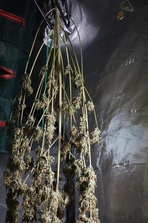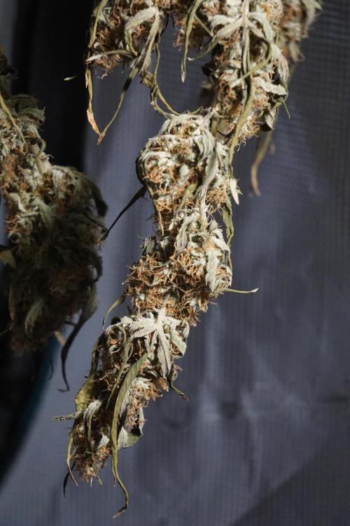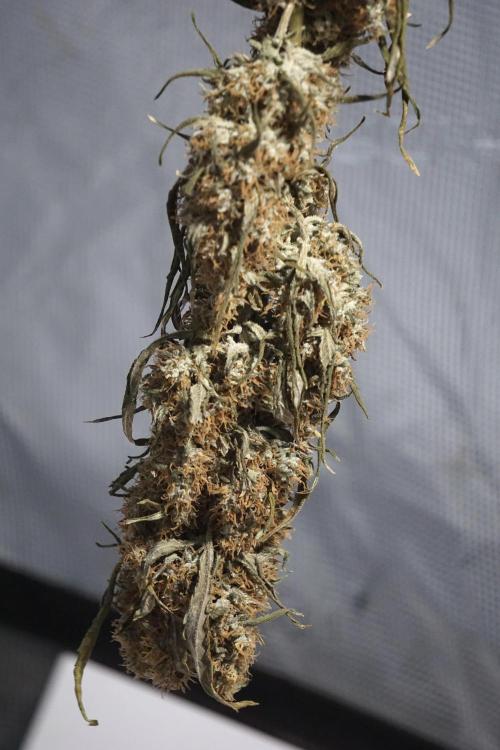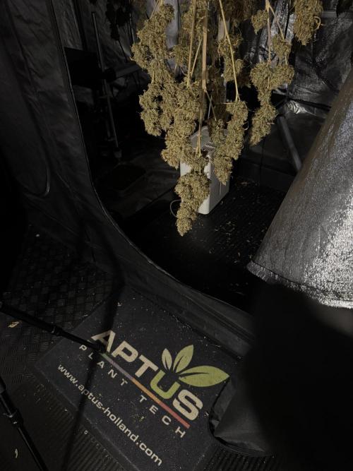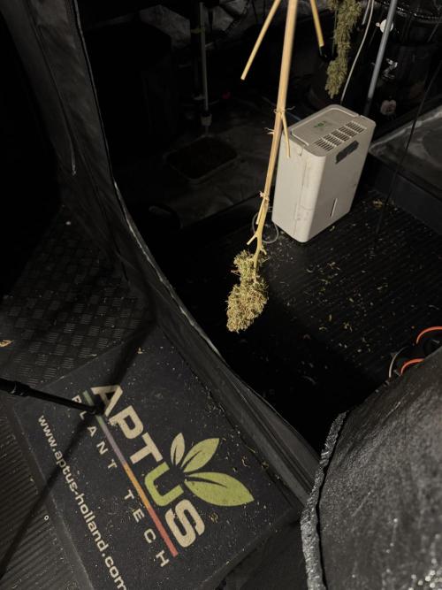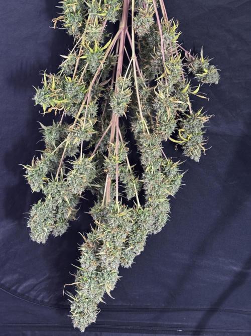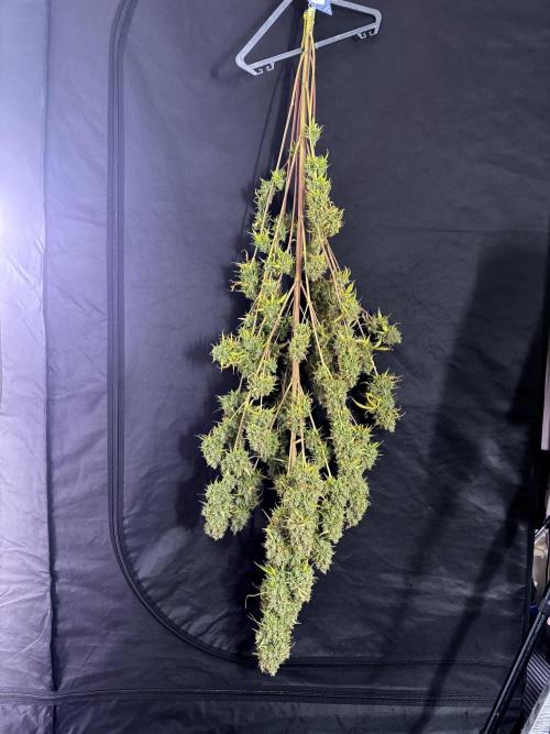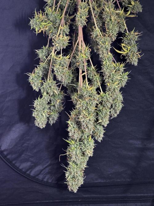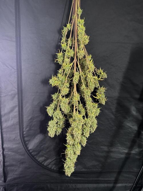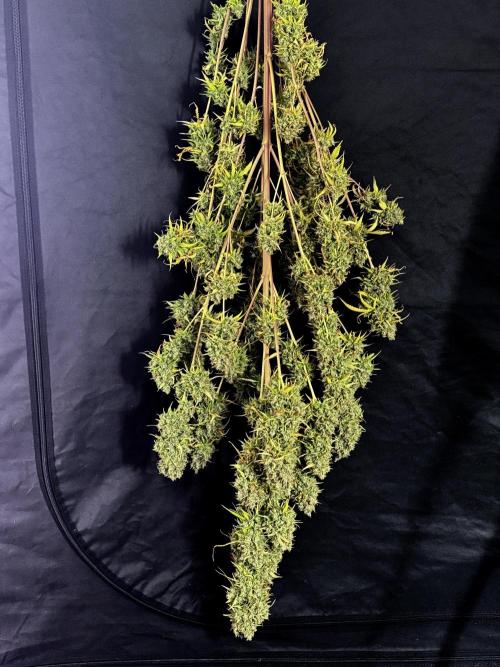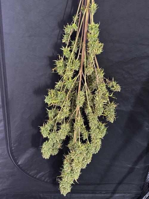 • Drying duration: two weeks (full-plant hang), at the environment you maintained (consistent conditions around your final stage set point). This allowed a controlled, gradual loss of moisture and preserved aromatic compounds and trichome integrity.