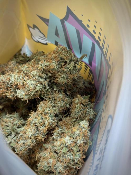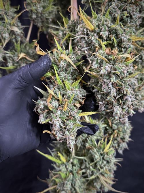 • Appearance: colors trending golden to warm yellow tones, heavy frosting of trichomes, dense calyxes and robust colas. The buds visually convey potency and quality.