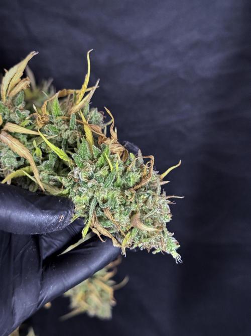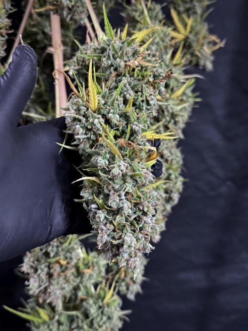 • Buds: Dense, sticky, large colas with minimal leaf-to-bud ratio — perfect for trimming and display.