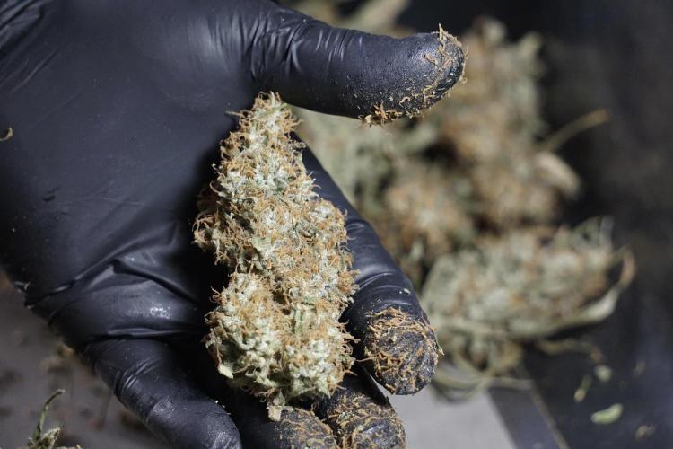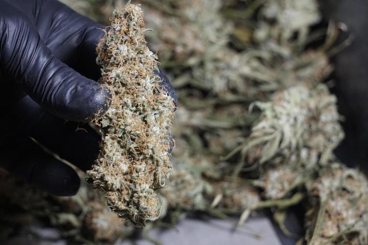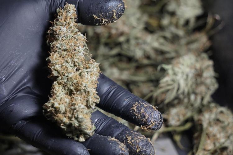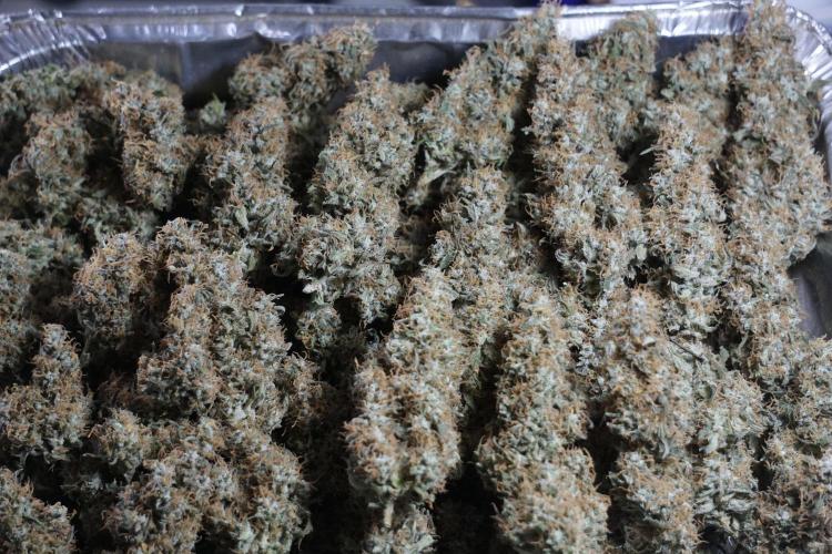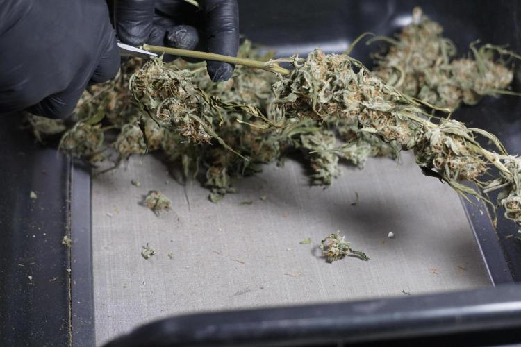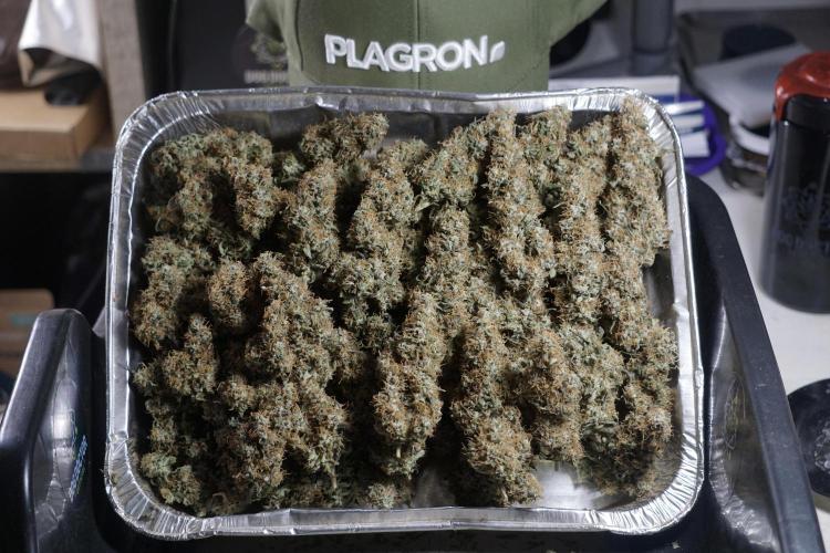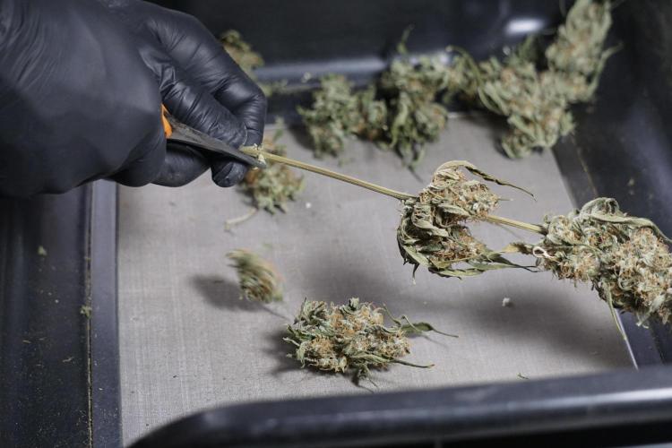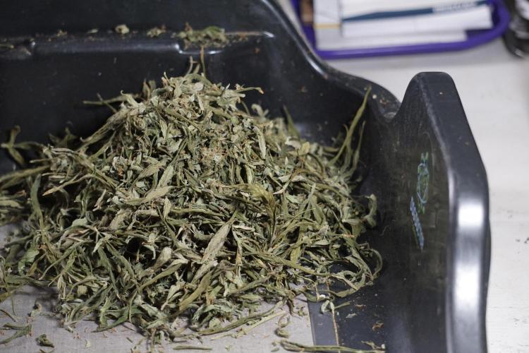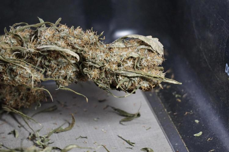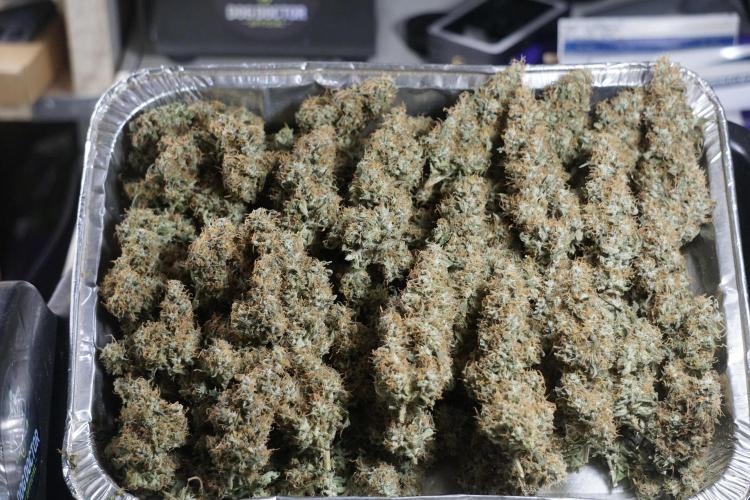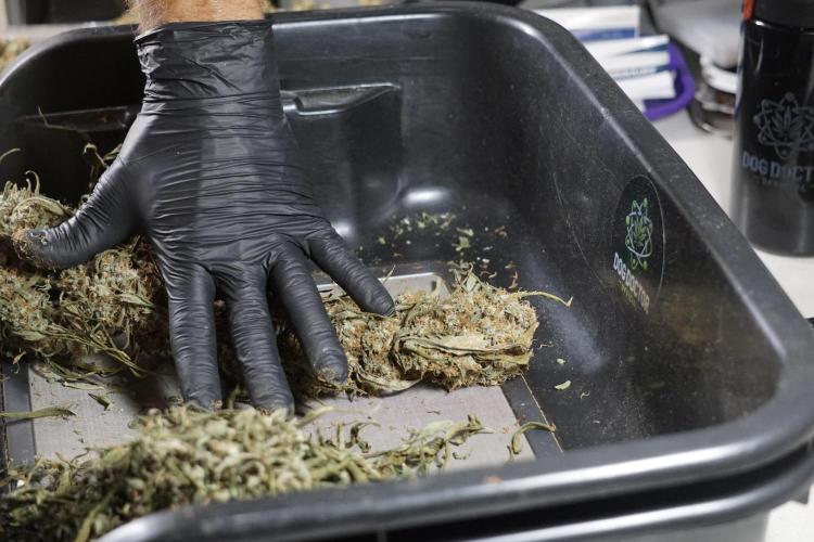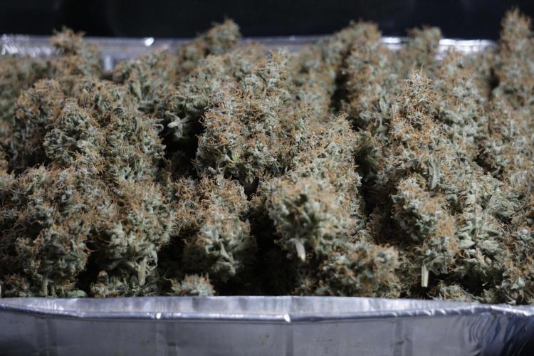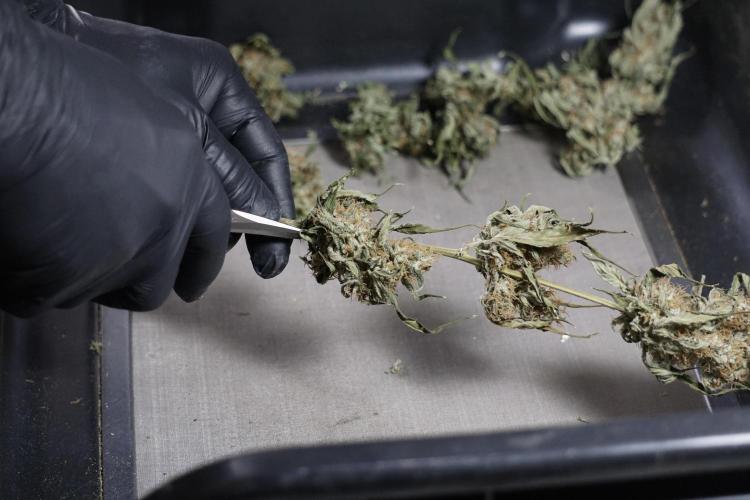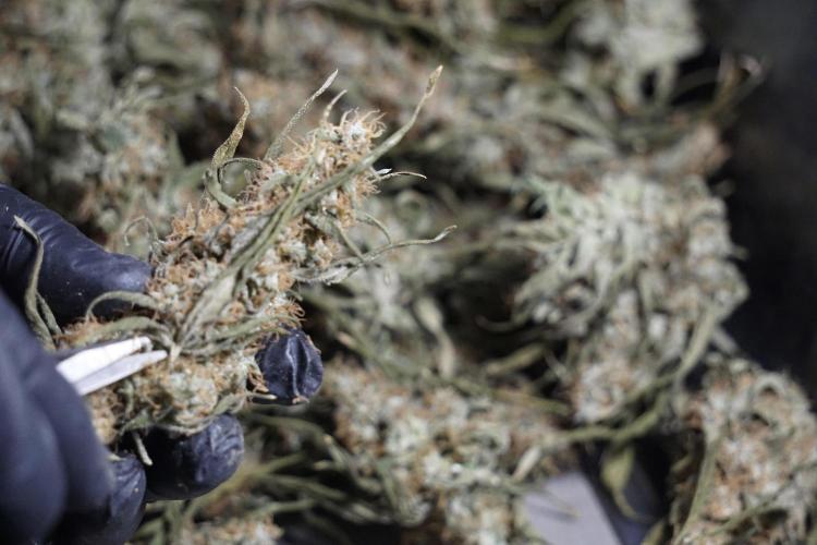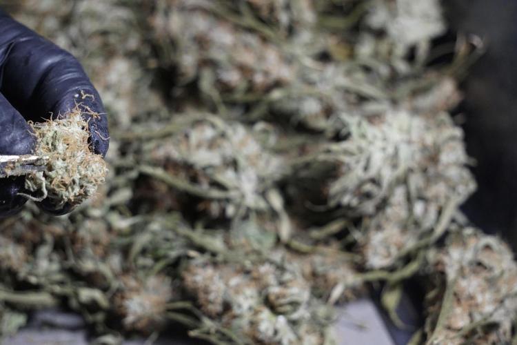 • After the two-week hang, the plants were moved to a dedicated trimming area and placed in the trim bin for processing.
