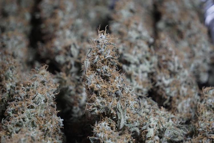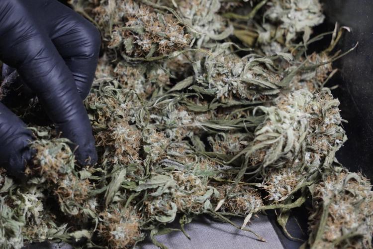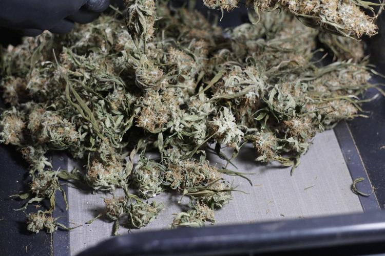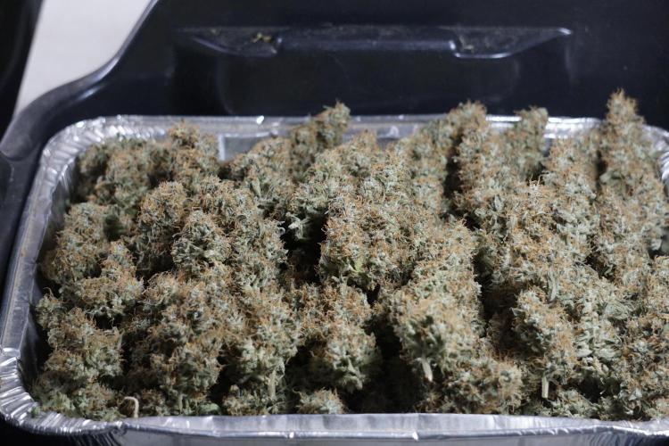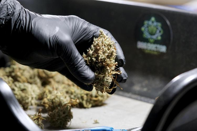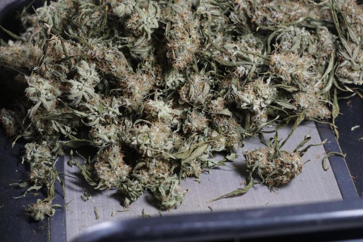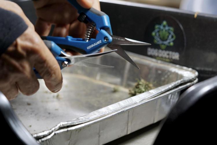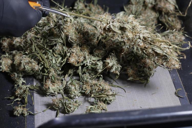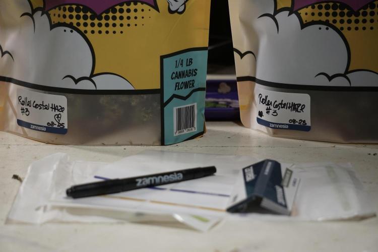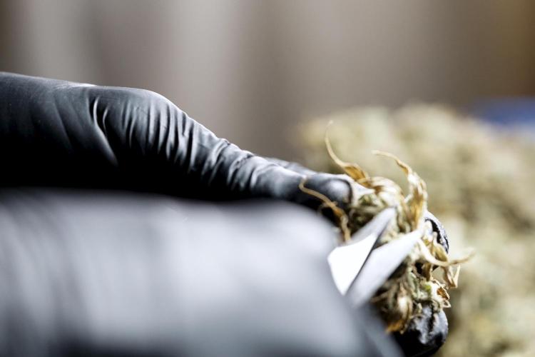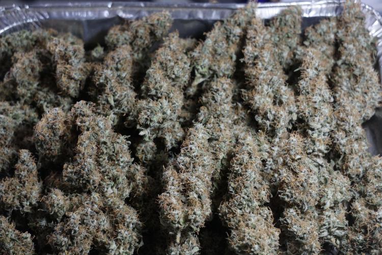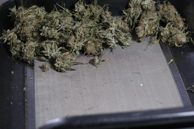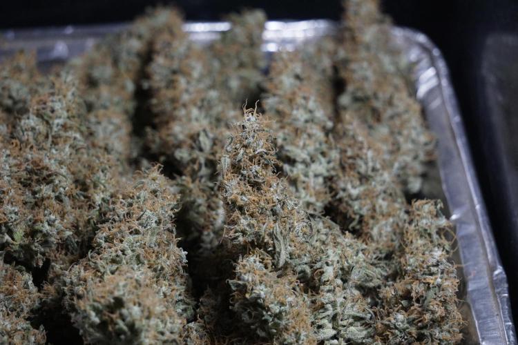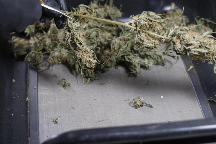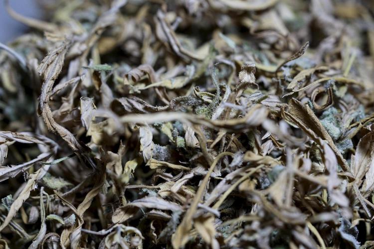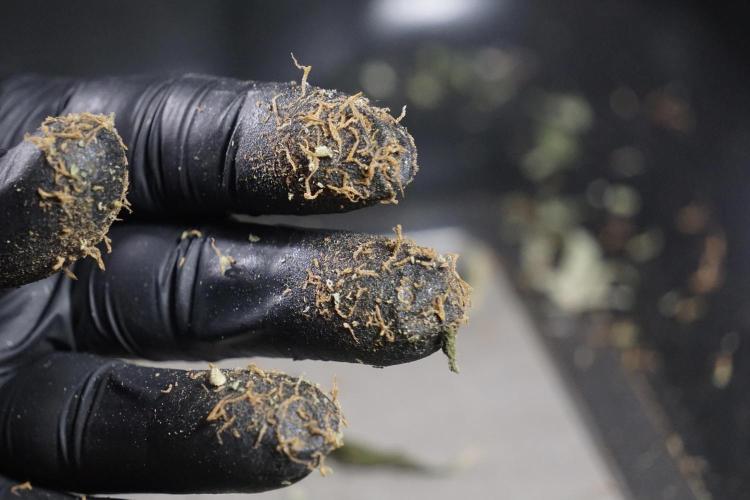 • After the two-week hang, the plants were moved to a dedicated trimming area and placed in the trim bin for processing.