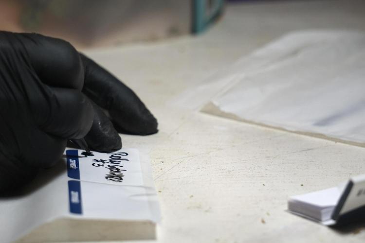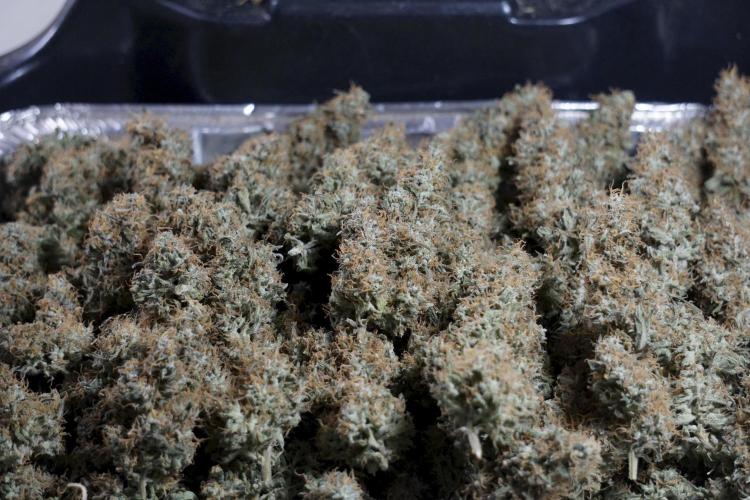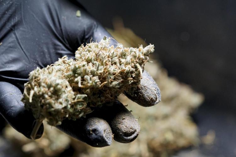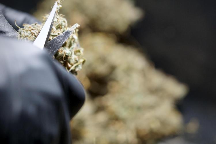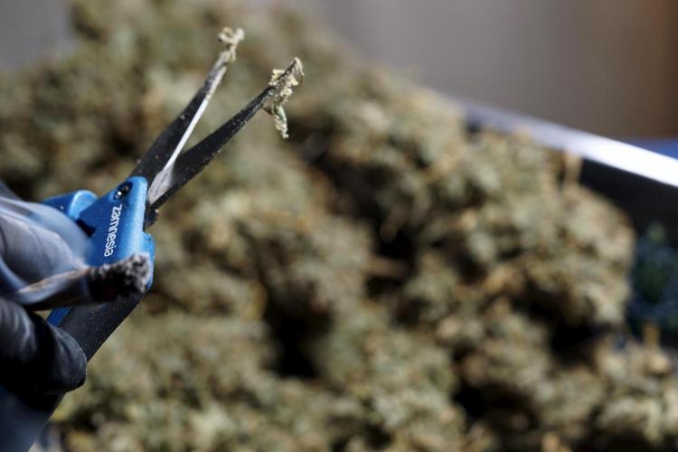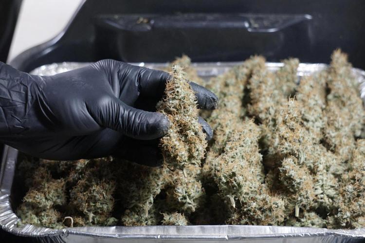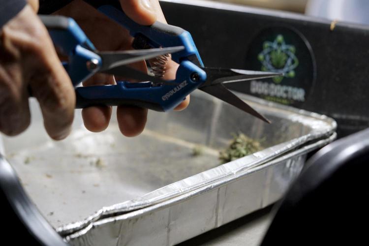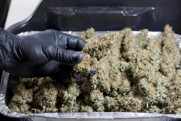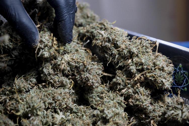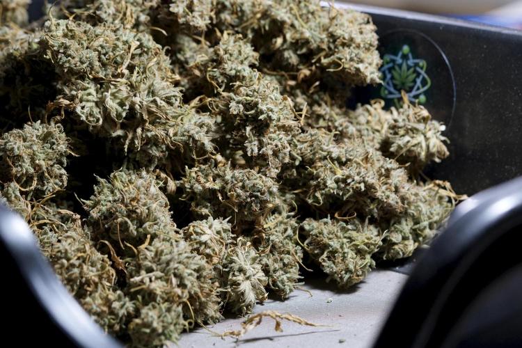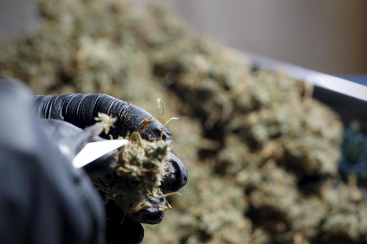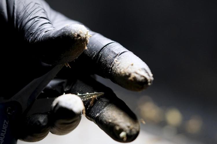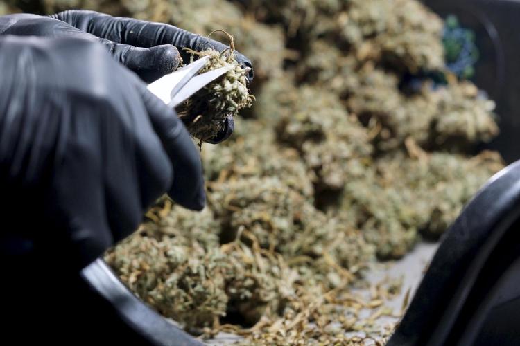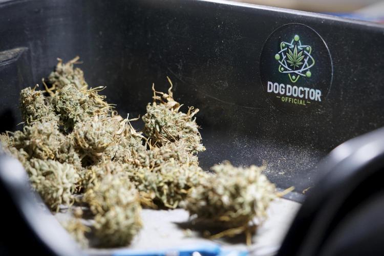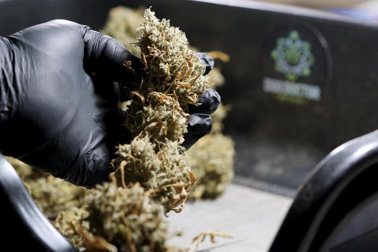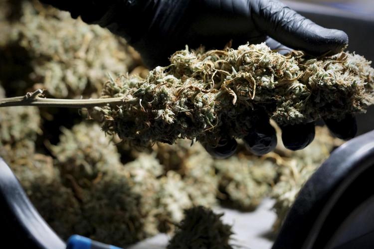 • After the two-week hang, the plants were moved to a dedicated trimming area and placed in the trim bin for processing.