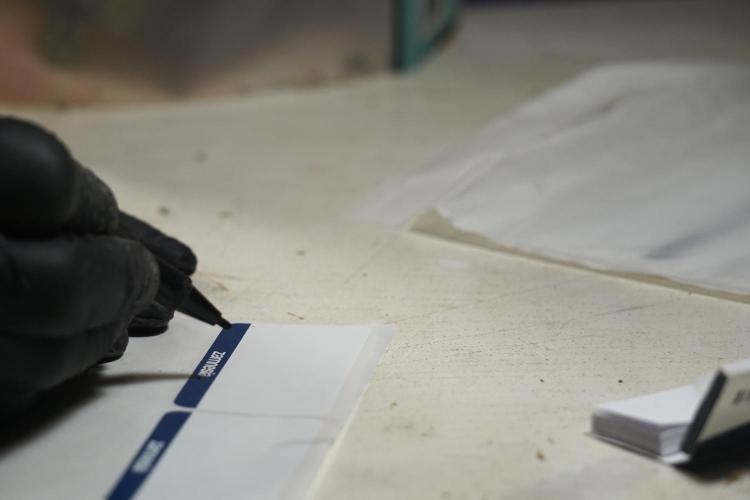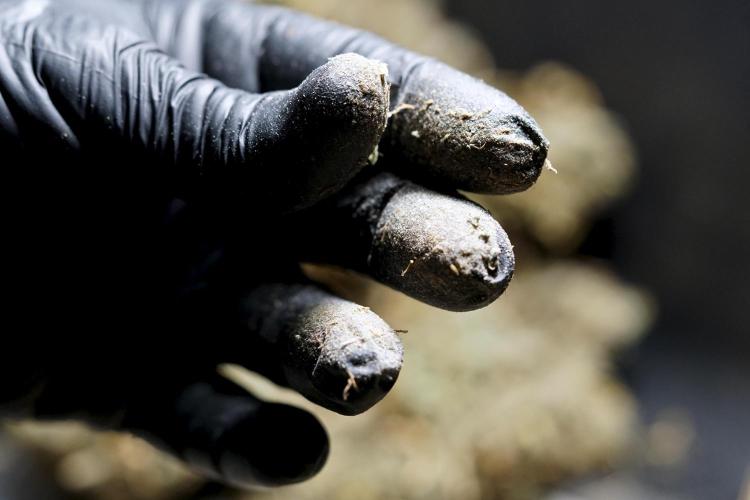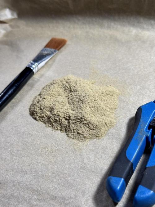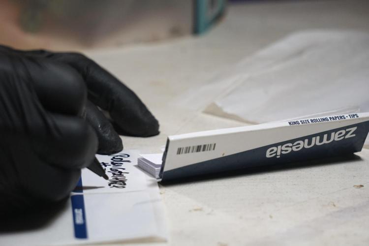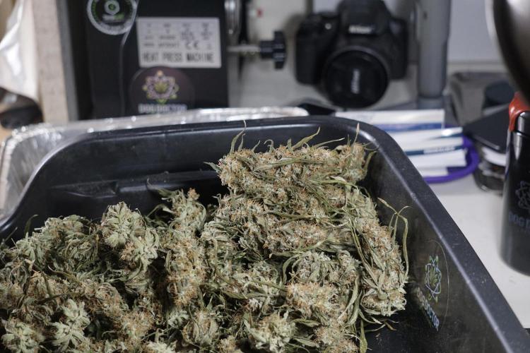 • While trimming, kief was collected from the trim and from screens. The kief was then pressed into a concentrated resin/hash using heat and pressure.