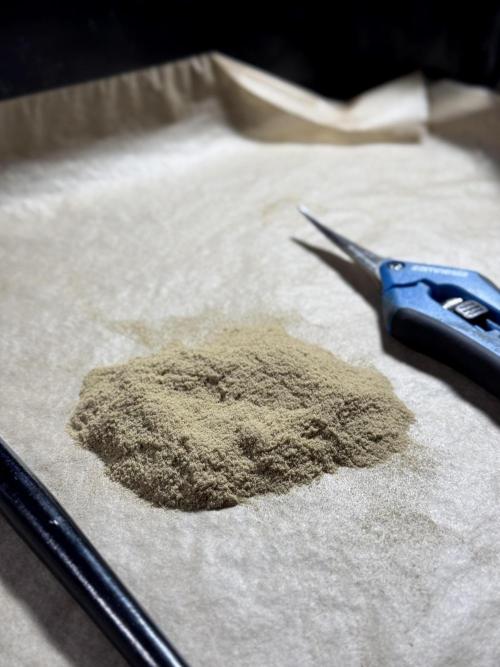 We also collected kief and pressed it into a beautiful resinous hash using heat and pressure; this sits alongside the cured flower and will be part of the upcoming smoke review.