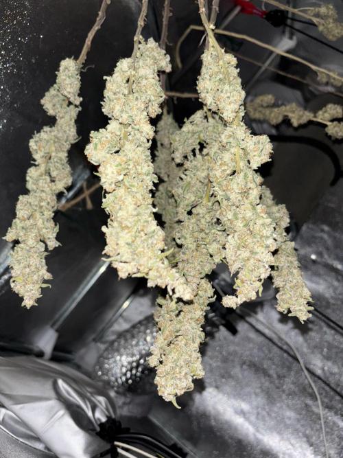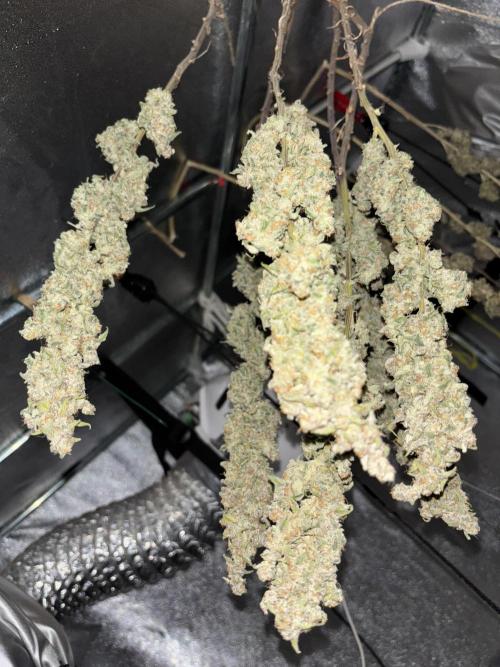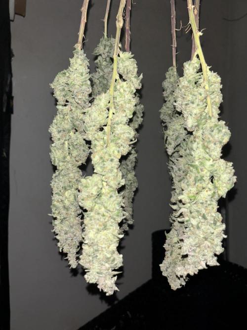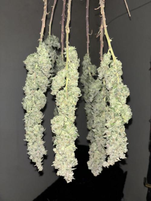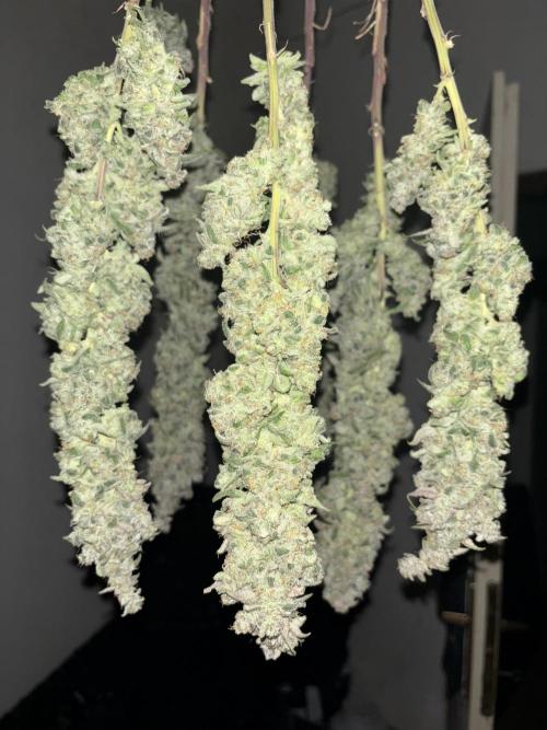Amazing strain,flooded with trichomes. I was afraid of budrot mostly for her as she was always wet no matter if humidity was 30%. One crazy and beautiful plant. Buds look fluffy but they are dense,hard and smell wonderful. I ll add the outcome but from what i see there will be about 60-80gs of top weed,trim and lows gone to oil like usual. Slowly drying and than i want do do a good cure before smoking,and final trim of every bud. Thank you Growers Choice,top work as usual️