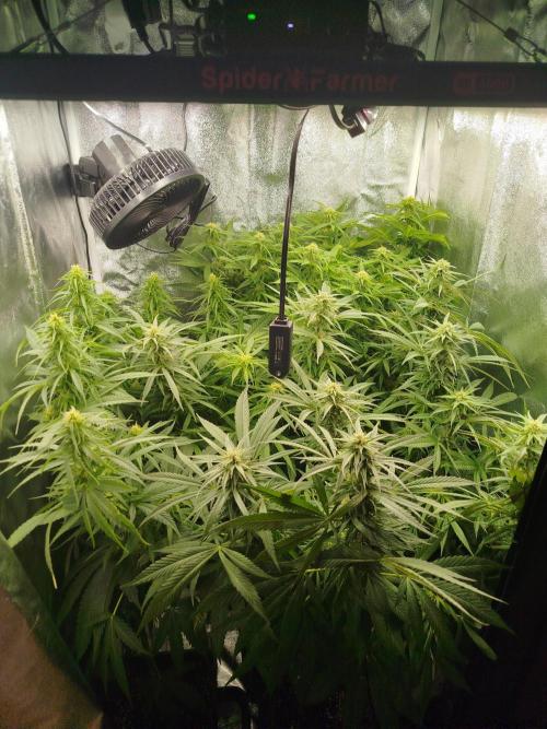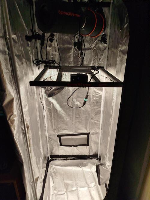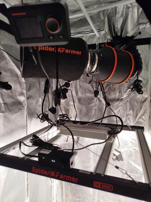 vyndalin Since the weather outside is nasty and I didn’t want to throw it away, I got myself a grow tent and a full setup from Spider Farmer (SE3000). Today’s the first day under LED lighting. I set the fans to environmental mode, and at five in the morning I was stunned—humidity was through the roof and it felt like a plane was taxiing down the runway. Definitely needs some fine-tuning. The light is set to 75% for the first two days to help with acclimatization. After that, it’s getting full blast. Hopefully, the Sensi Skunk will still release its honey.
