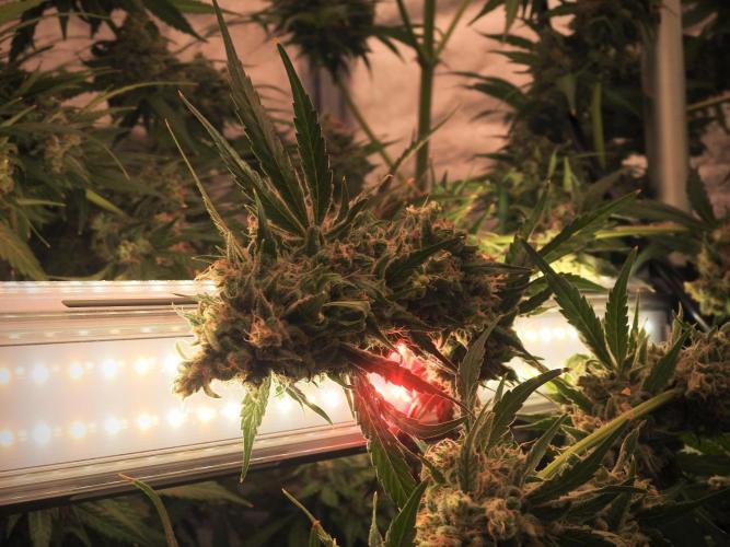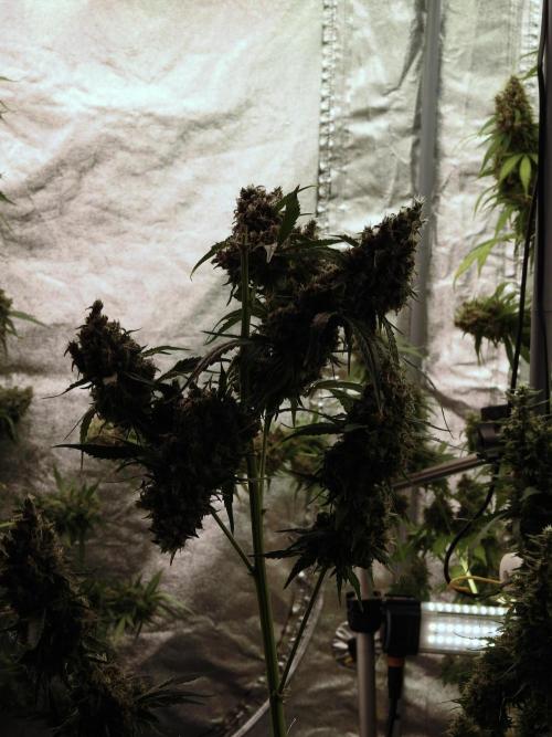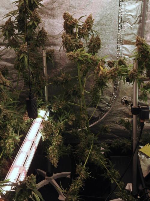 • Veg went strong, with both phenos thriving under the Black Series LED and later joined by ThinkGrow and Lumatek support.