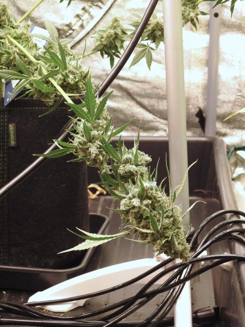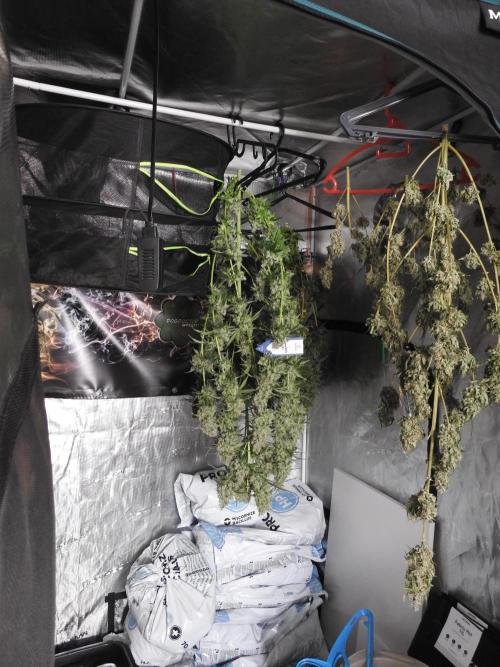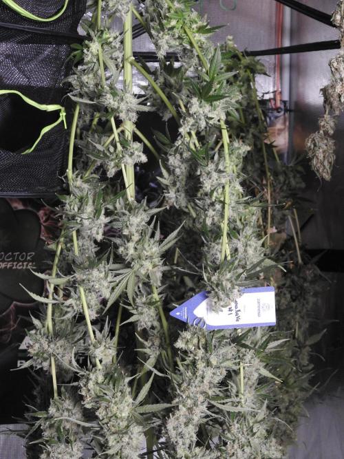 For Lava Cake #2, we harvested the entire plant and are drying her whole. Because bud rot was present, we’re being extra careful: