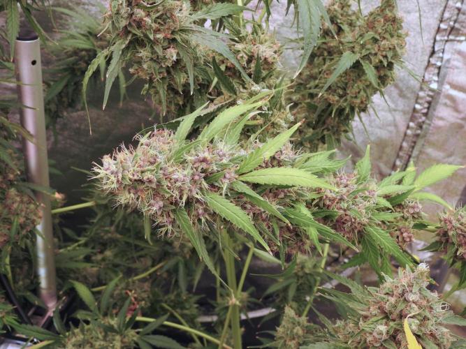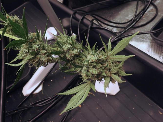 Despite our best efforts, phenotype two (Lava Cake #2) showed visible signs of bud rot. To protect the garden, she was harvested early. Infected material was thrown straight into the trash (not compost — spores spread too easily), and the healthy parts are now drying in a separate, controlled space.